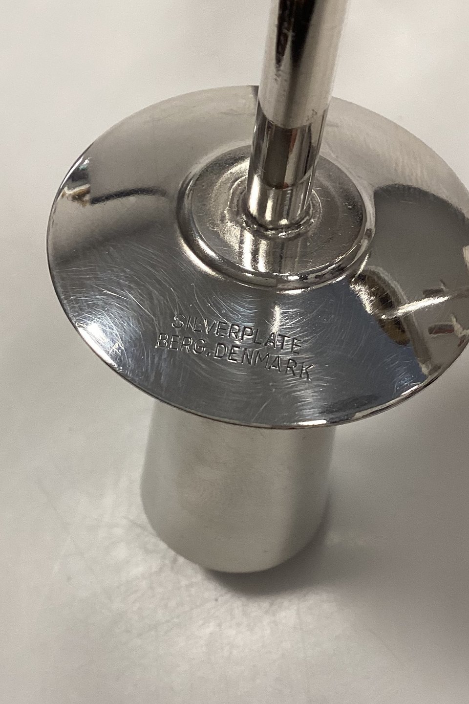 Beskrivelse: Par trearmede Lysestager i Sølvplet af Johannes Berg