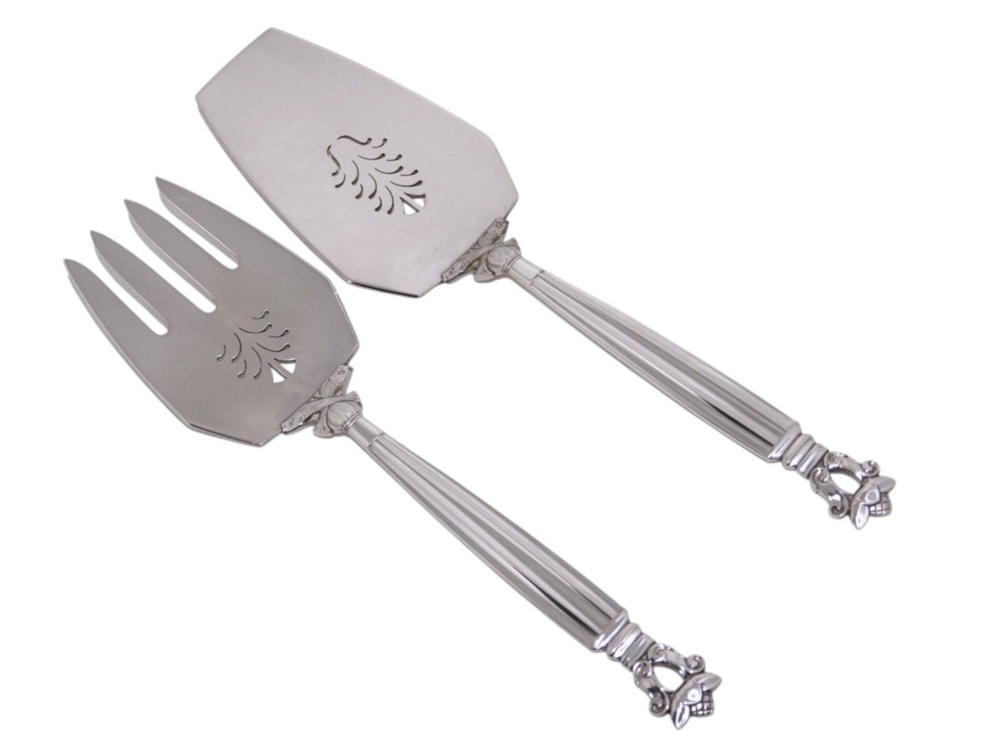 Beskrivelse: Georg Jensen Konge sølv, stort og sjældent set fiskeserveringssæt.