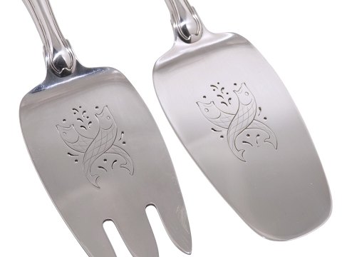 Beskrivelse: Georg Jensen Dobbeltriflet sterlingsølv, stort fiskeserveringssæt i en meget flot kraftig kvalitet.