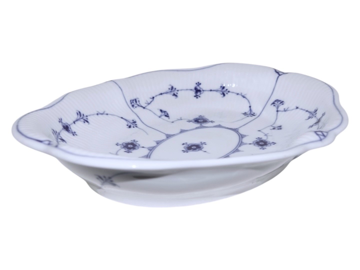 Beskrivelse: Royal Copenhagen Musselmalet Riflet, sjælden brødbakke.