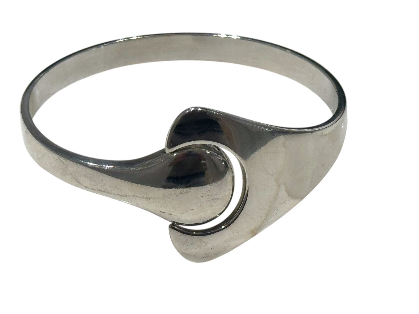 Beskrivelse: Hans Hansen sterlingsølv, armring i flot kraftig kvalitet. Fronten kan klikkes sammen.