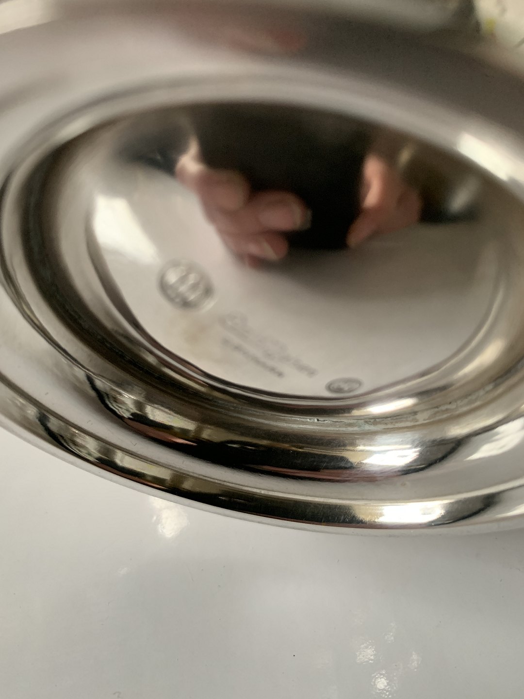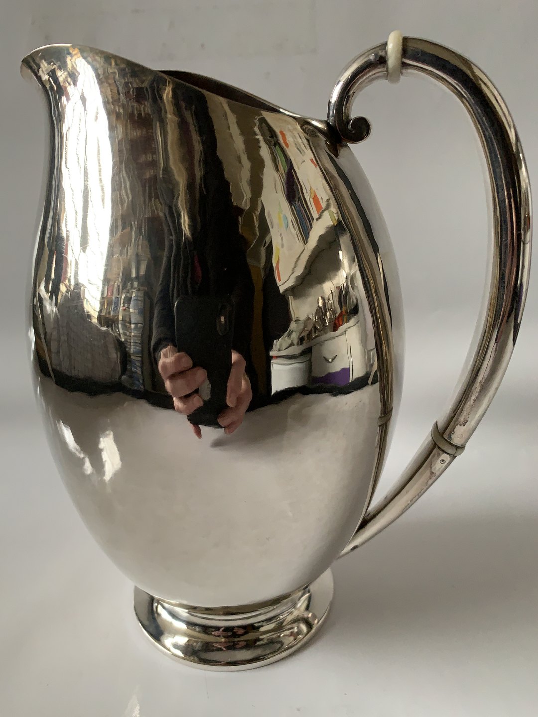 Beskrivelse: Evald Nielsen sølv kande hammerslået .