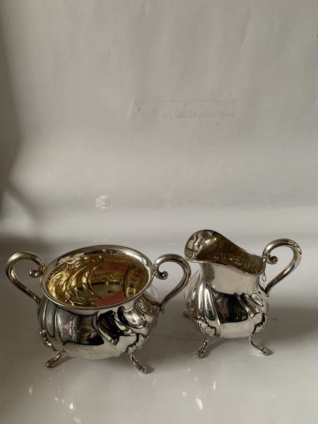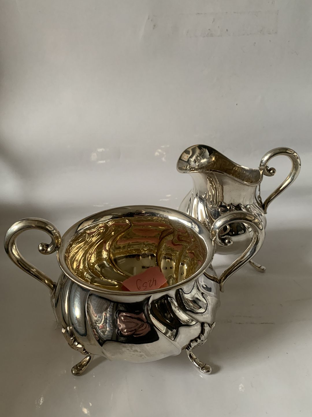 Beskrivelse: Flødekande og sukkerskål i sølv