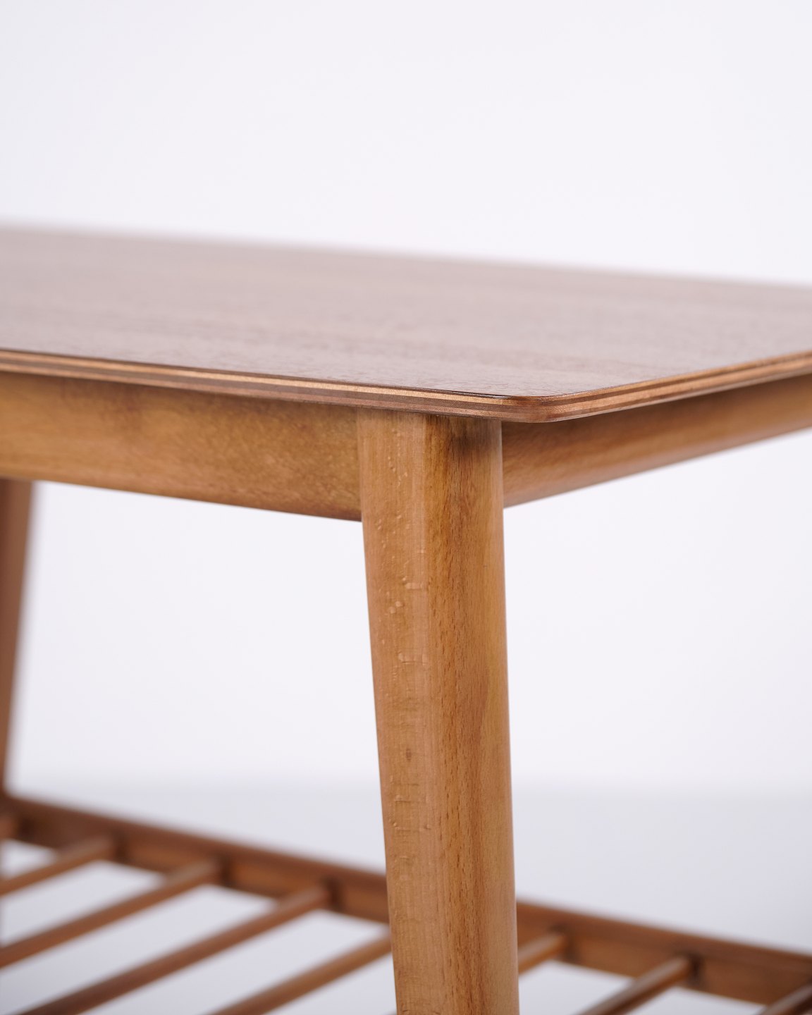 Beskrivelse: Sidebord fra 1960’erne i teaktræ med hylde og hjul. Klassisk dansk design.