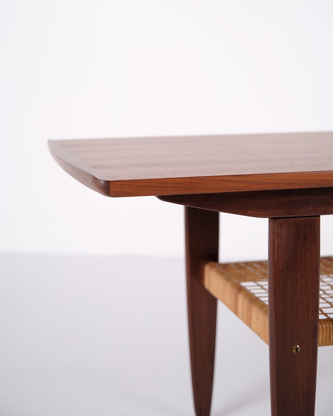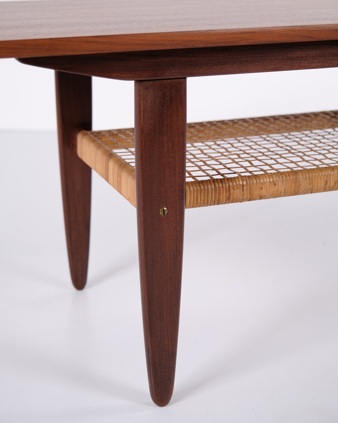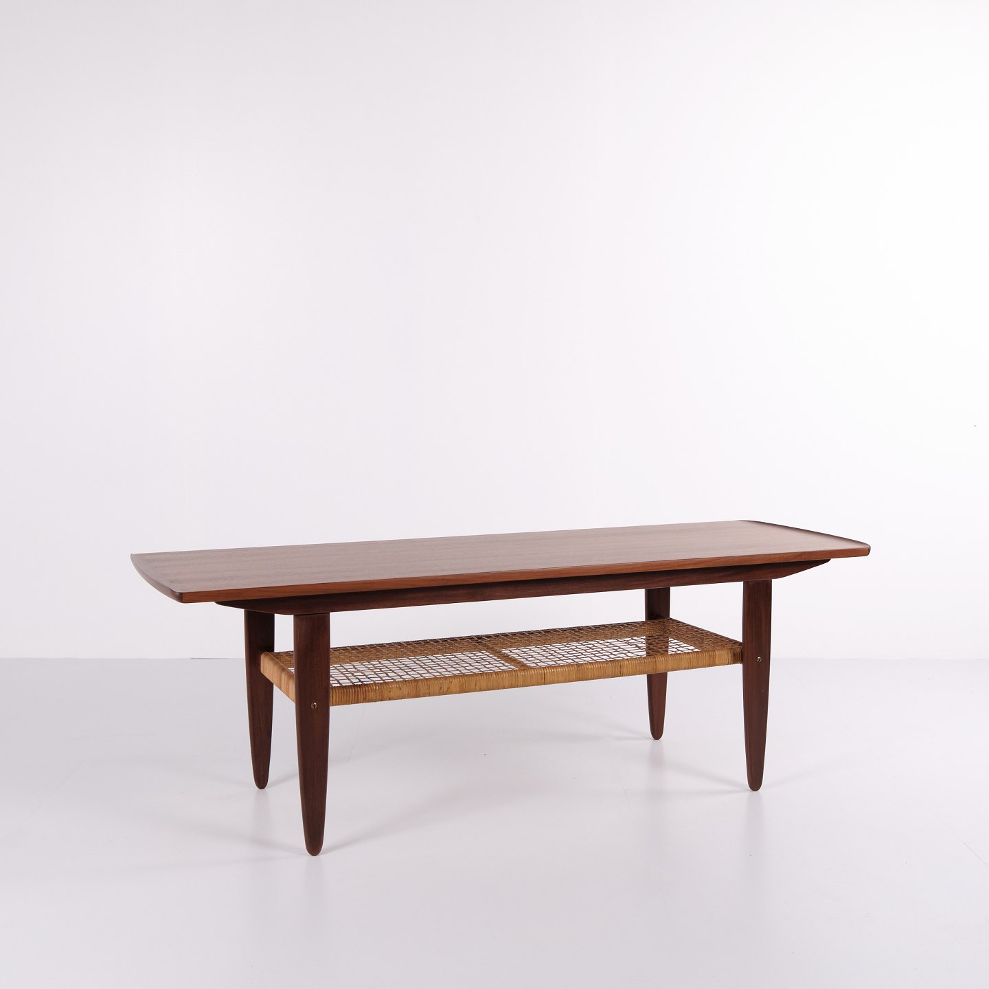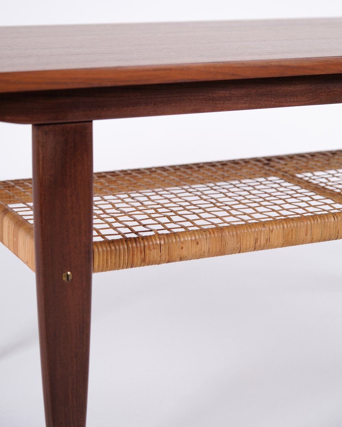 Beskrivelse: Sofabord udført i teaktræ med hylde lavet af sjeneflet fra 1960erne. Klassisk dansk design.