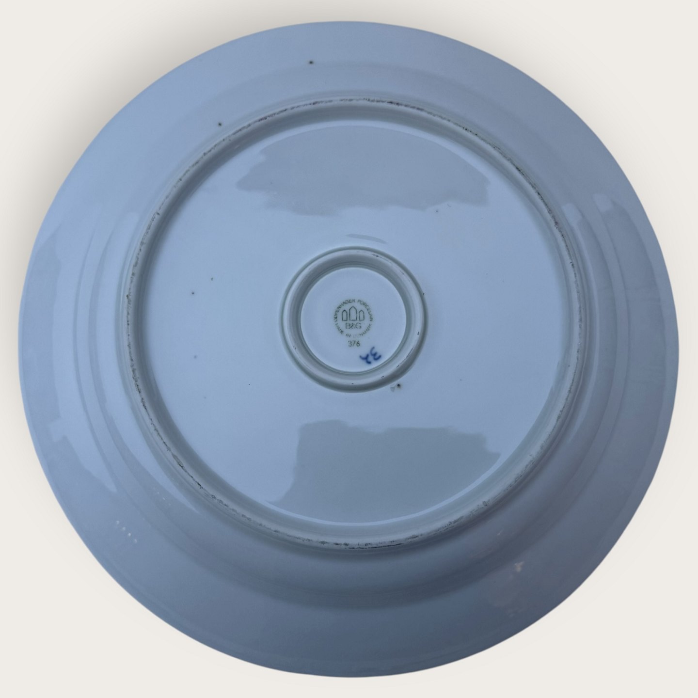 Beskrivelse: Bing & Grøndahl, Blåmalet / Musselmalet, Rundt fad #376, 32,5cm i diameter, 3.sortering *Pæn stand*