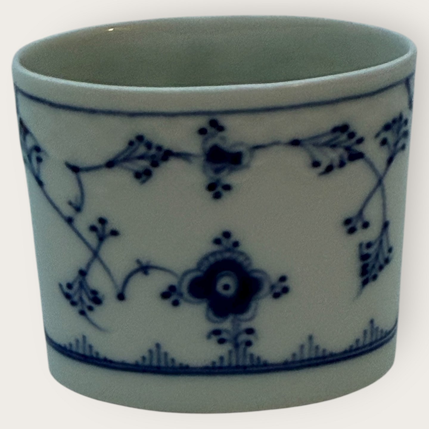 Beskrivelse: Bing & Grøndahl, Blåmalet / Musselmalet, bæger #369, 6,5cm bred, 6,3cm høj, 1. sortering *Perfekt stand*