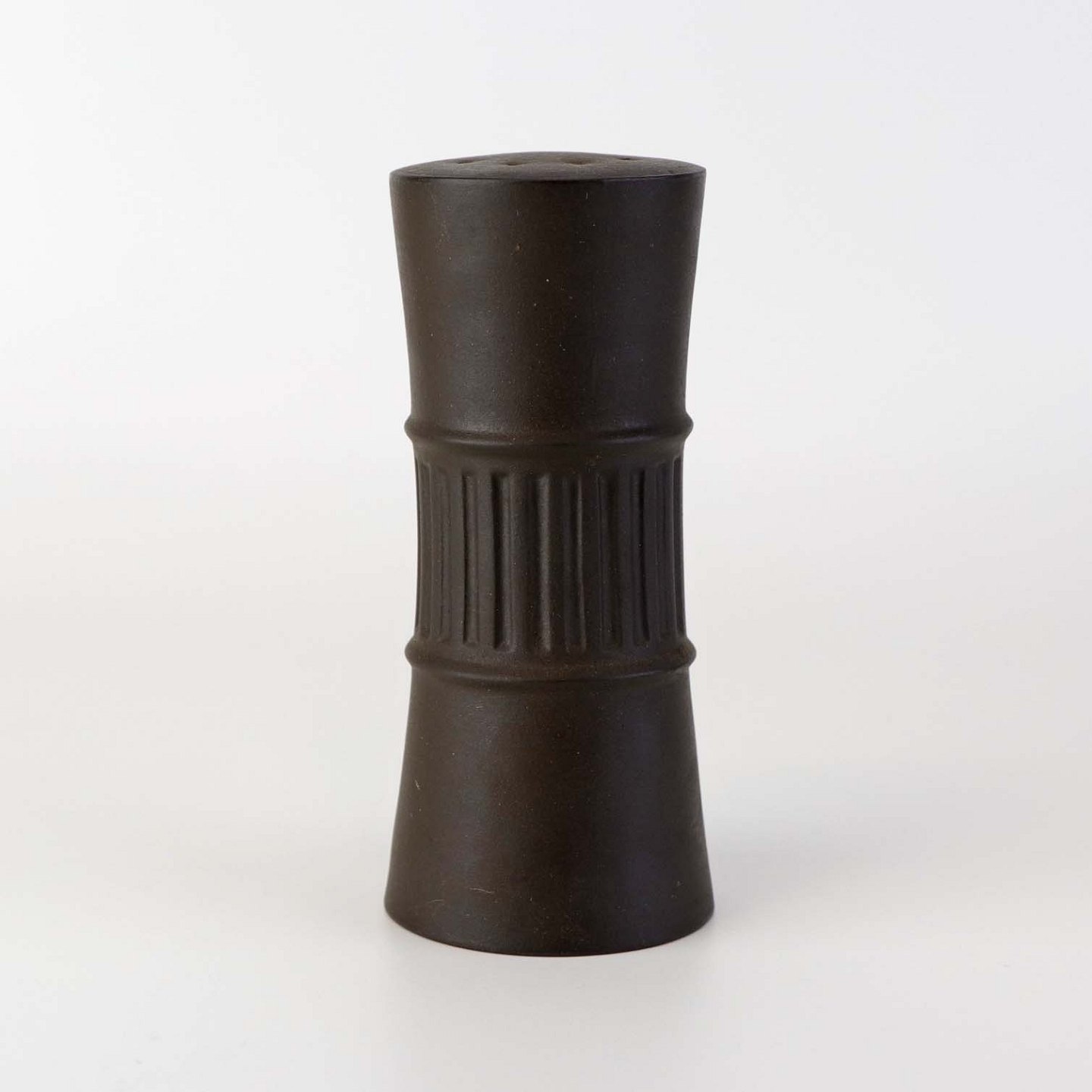 Beskrivelse: Bøsse til salt i stentøj fra stellet Flamestone