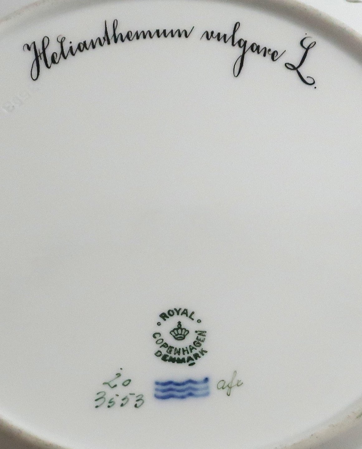 Beskrivelse: Royal Copenhagen. Flora Danica tallerken med gennemskåret bort. Diameter 25 cm. Model 3553. ( 1 sortering ). Helianthemum vulgare L