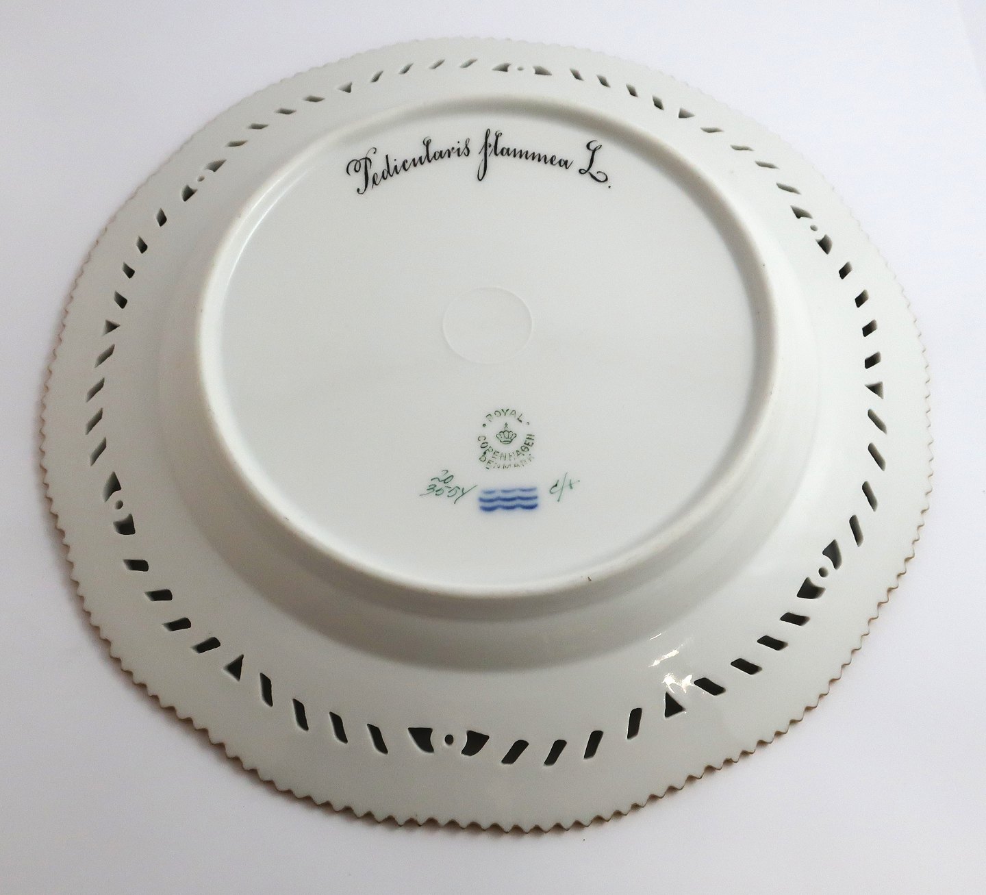 Royal Copenhagen, Flora Danica. Frokost tallerken med gennemskåret bort. Design #3554. Diameter 23 cm. (1 sortering). Pedicularis flammea L
