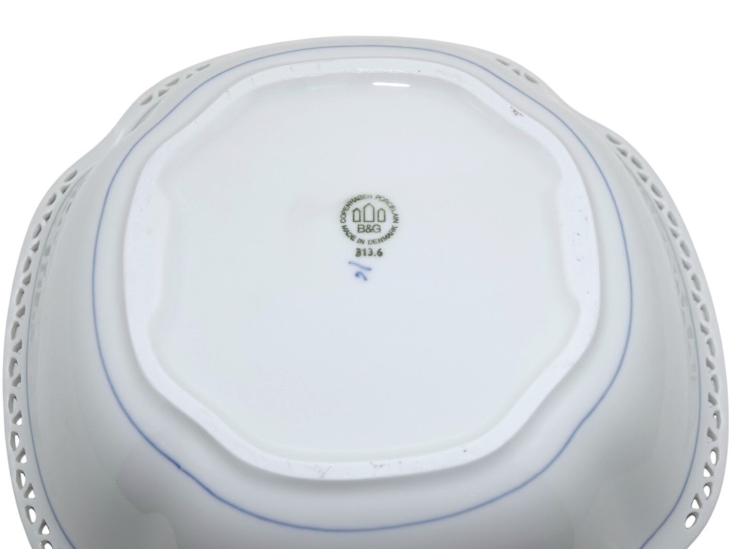 Beskrivelse: Bing & Grøndahl Empire med gennembrudt kant, stor firkantet kartoffelskål.