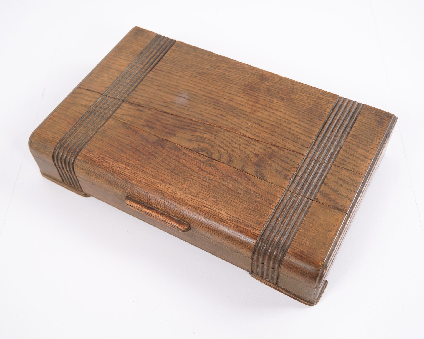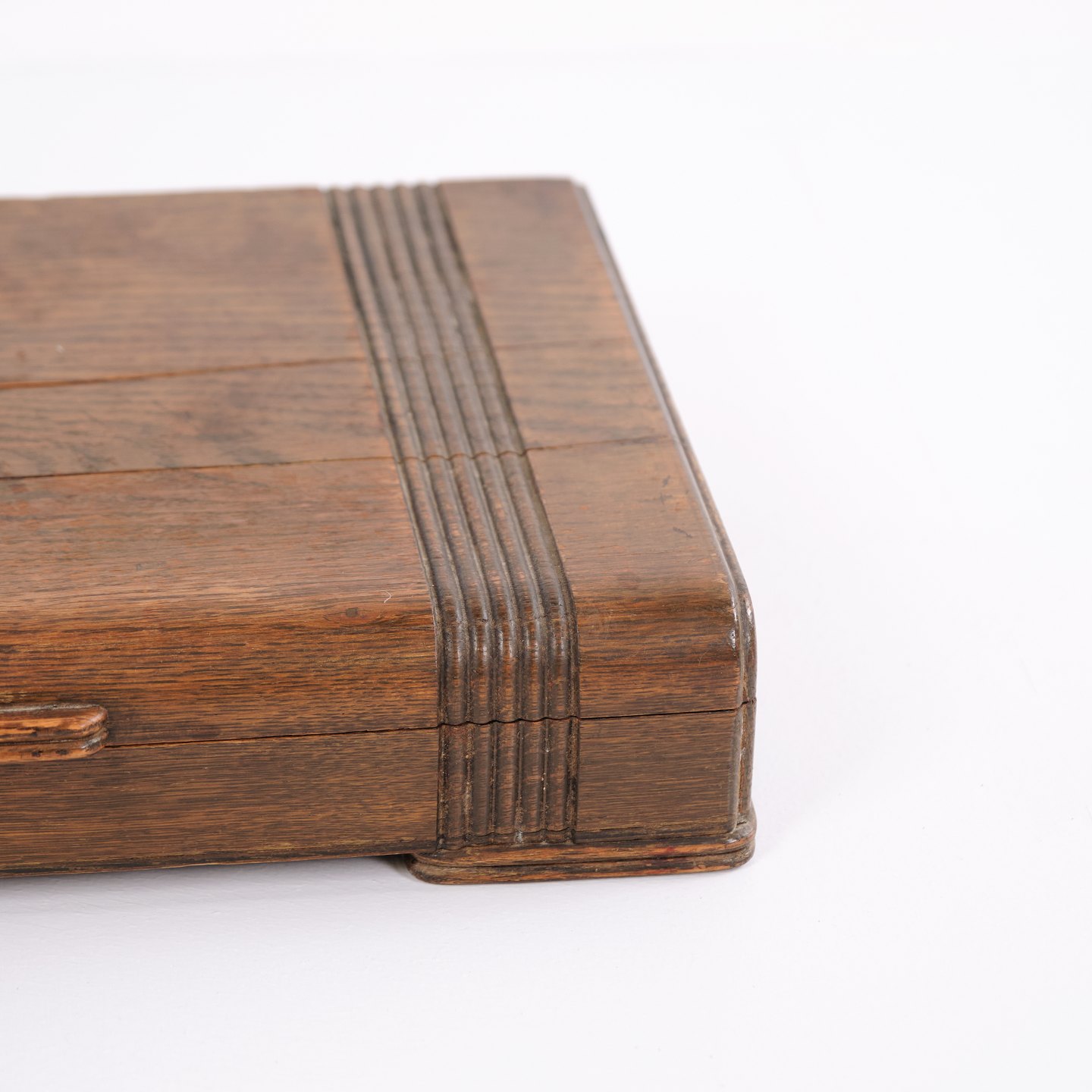 Cutlery Box Oak Green Brass Fittings Antique