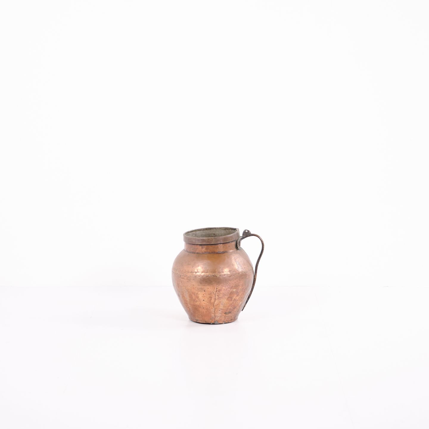 Description: Handmade copper pitcher from the 19th century with sturdy handle and classic shape. Danish origin. Suitable as antique decoration, collectible, or functional use.