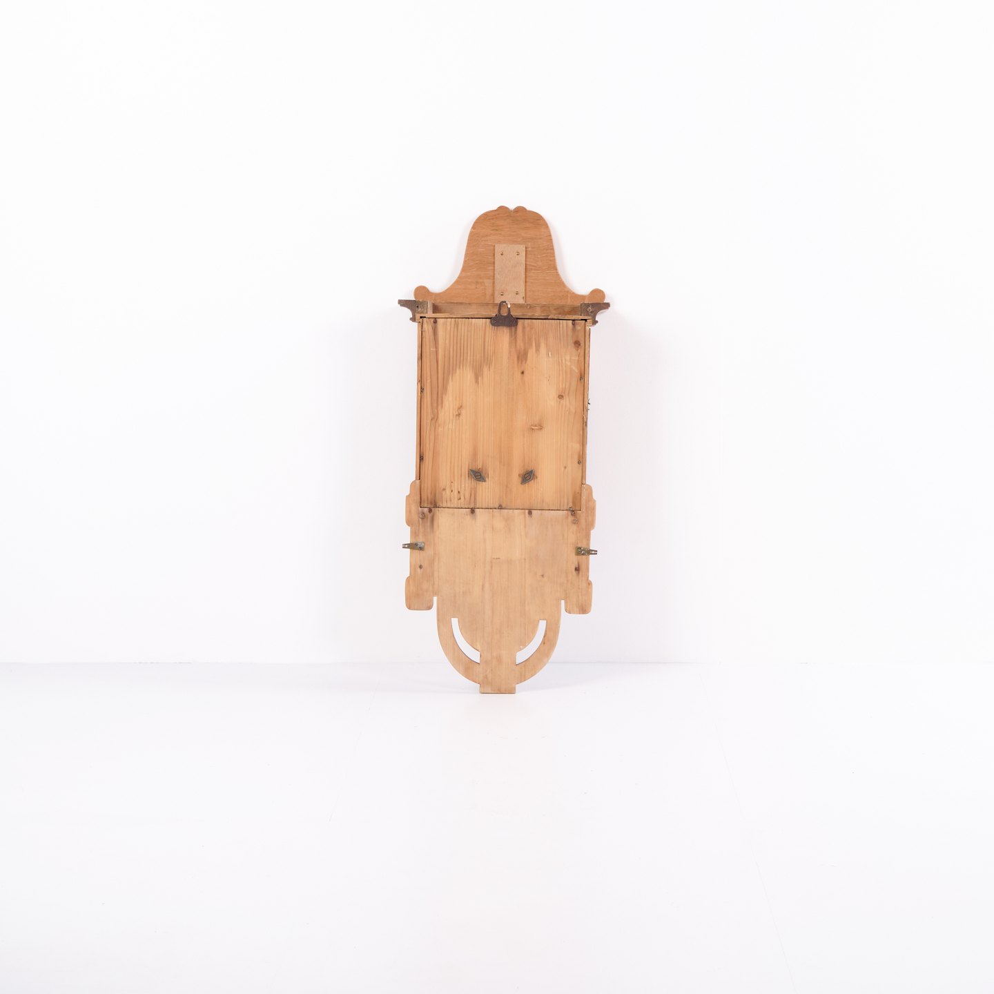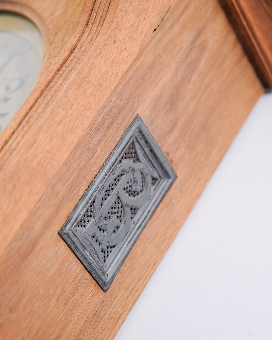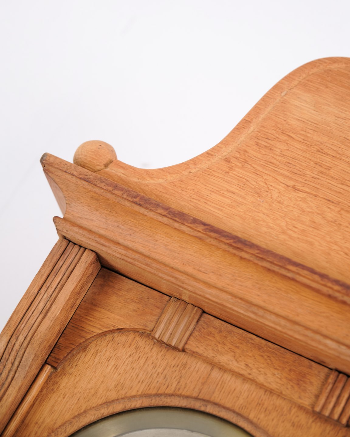Beskrivelse: Vægur fra begyndelsen af 1930-tallet, udført i egetræ og designet i Jugendstilens karakteristiske organiske formsprog. Urkassen har elegante detaljer og en klassisk front, der understreger perioden og håndværket.