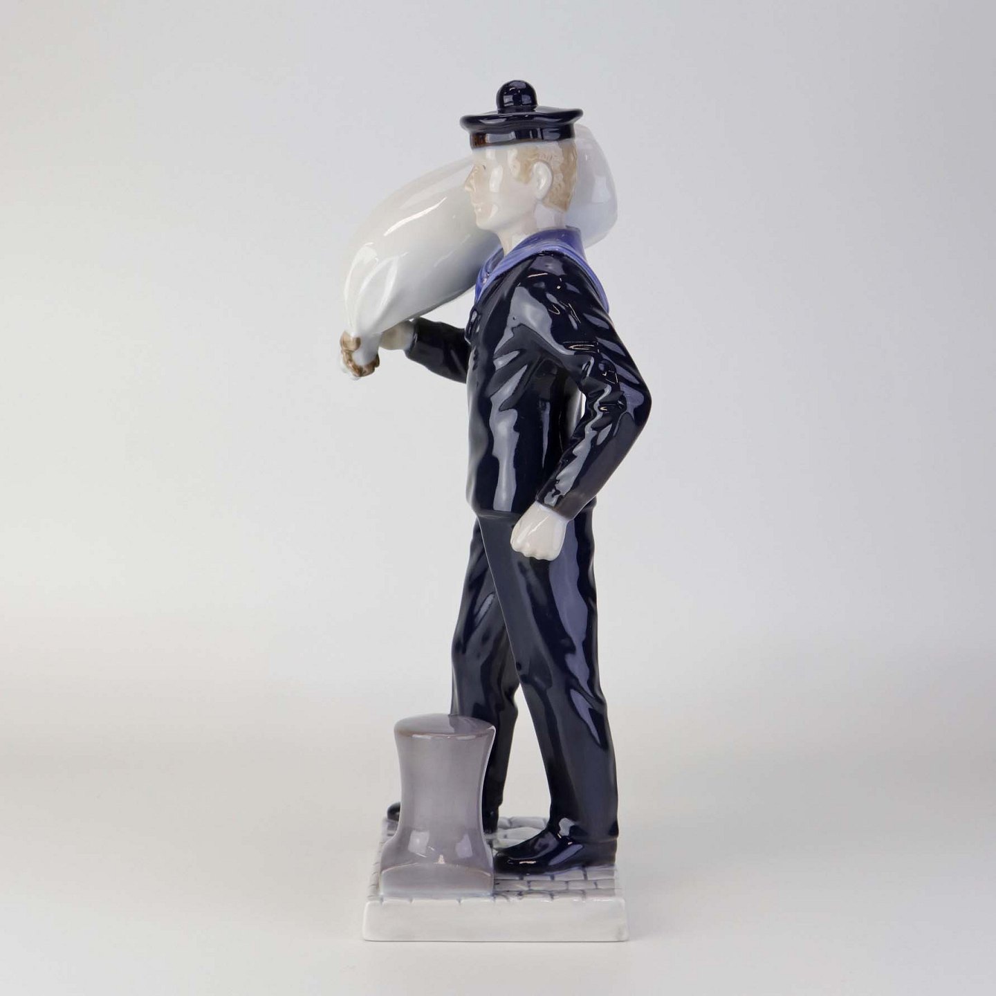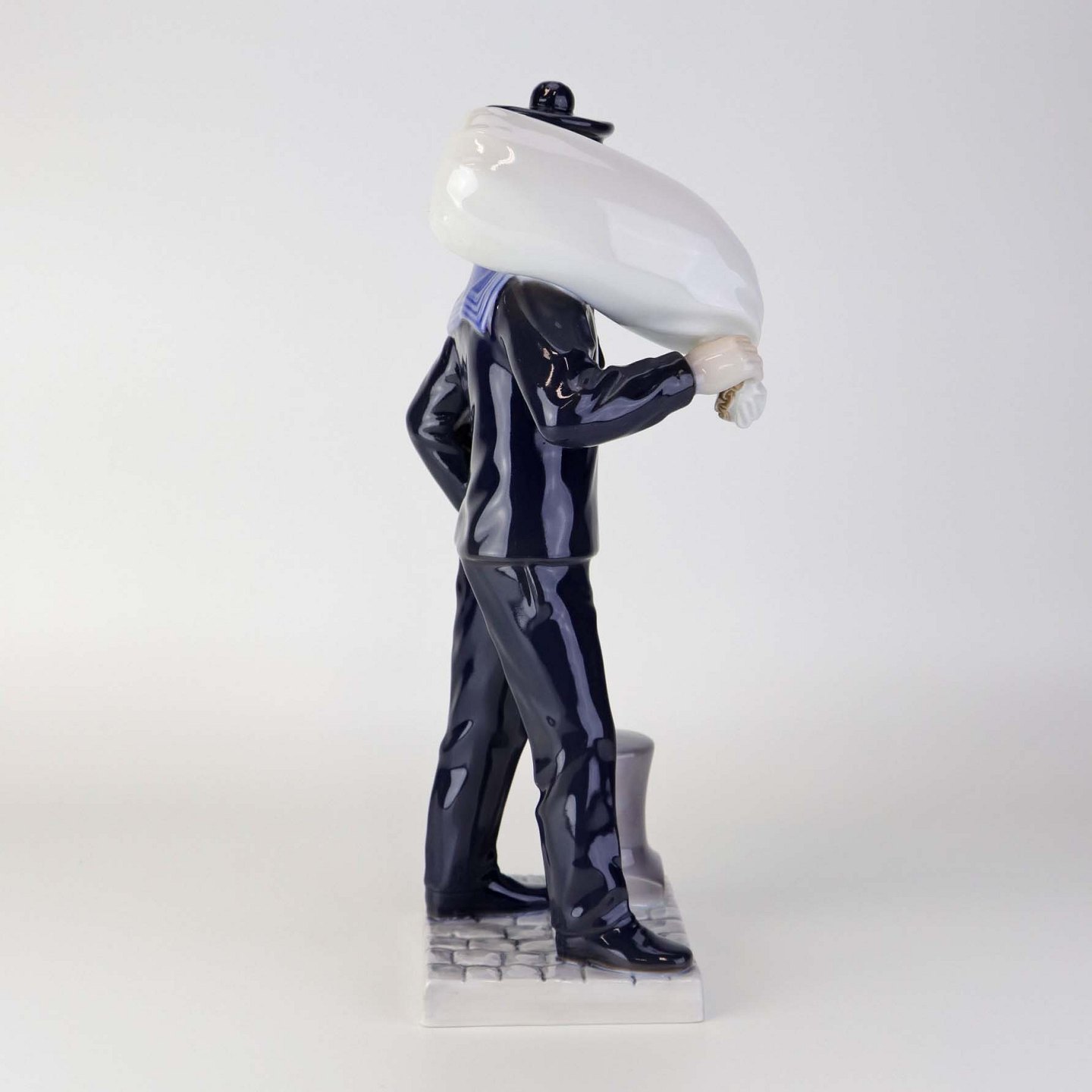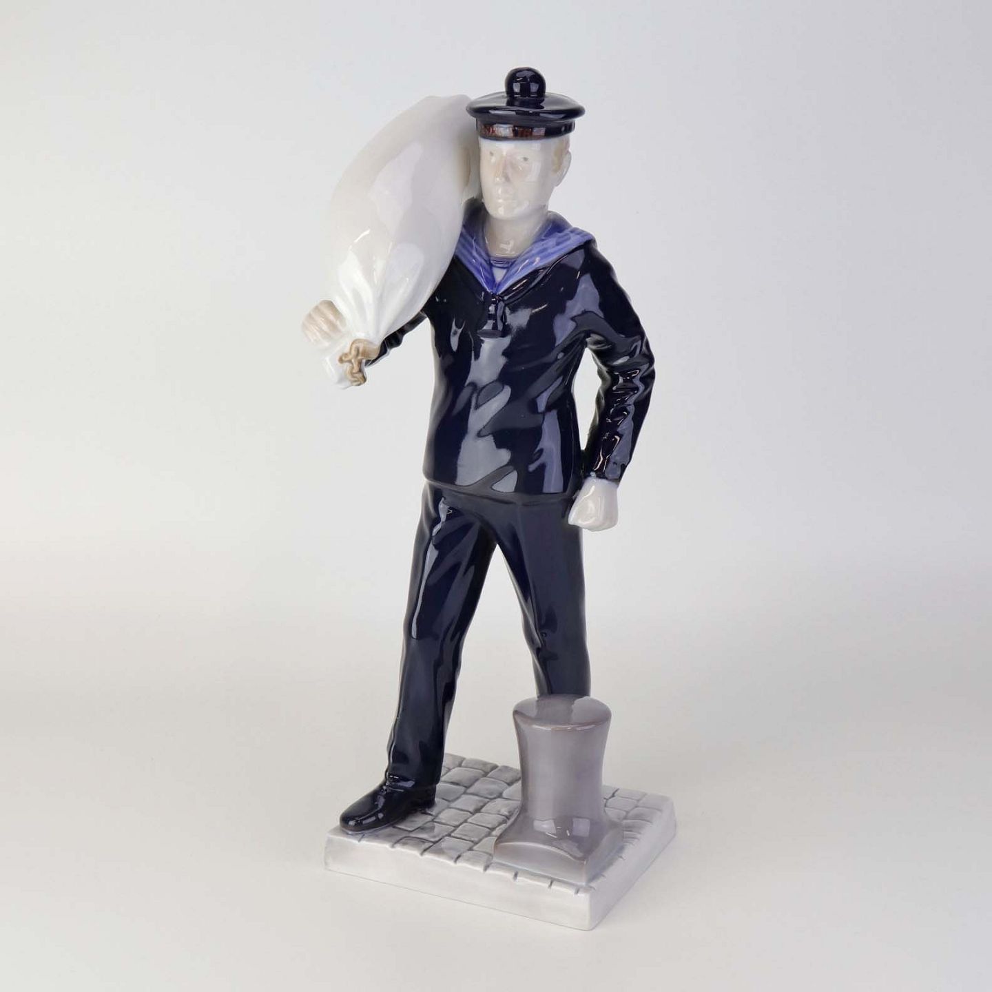 Beskrivelse: Figur i porcelæn med motiv af Matros med vadsæk fra skibet George Stage. Nr. 2456