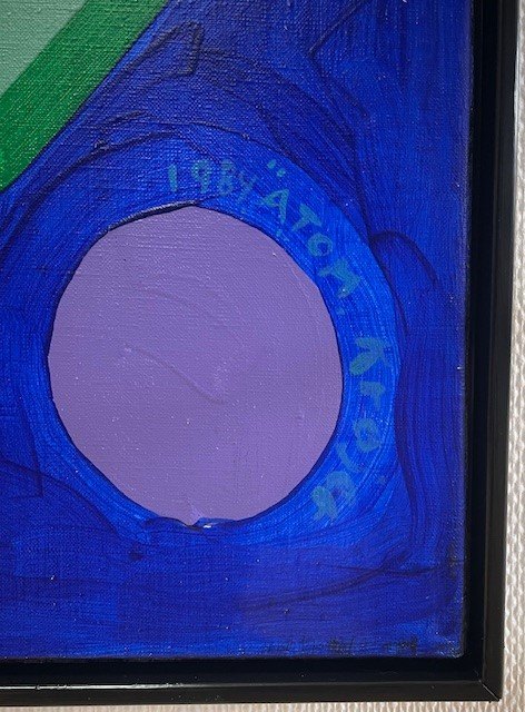 "Komposition" Stort flot oliemaleri, monteret i sort svæveramme.