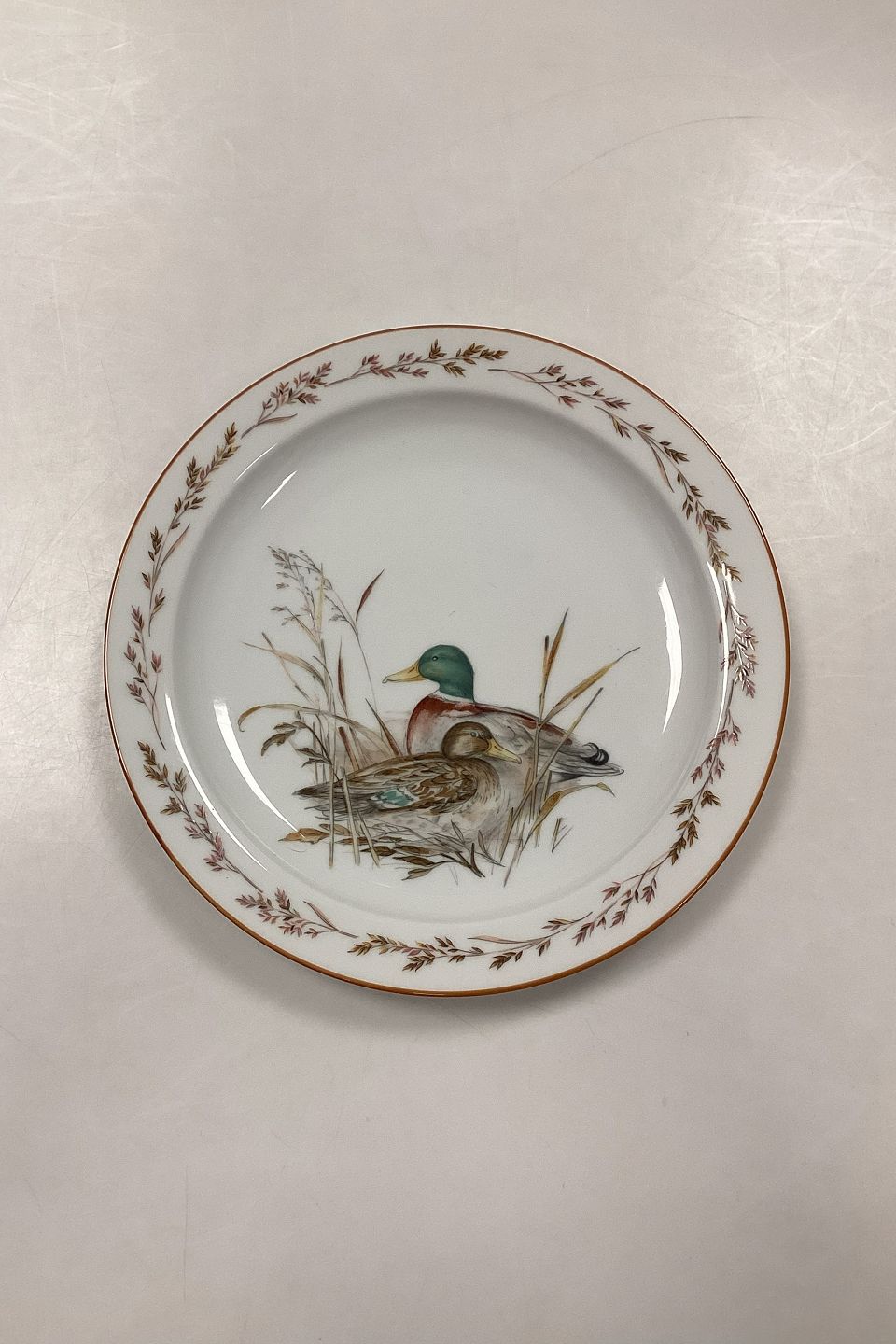Beskrivelse: Mads Stage Jagtstellet Frokosttallerken. Motiv: Gråand.