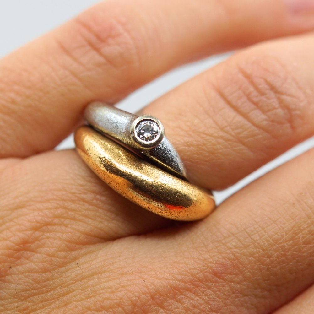 Beskrivelse: Ole Lynggaard; "Fidelity" ring i 14 kt. guld og hvidguld, prydet med brillantsleben diamant, 0.13 ct. samt hjerte i rød emalje indvendigt.