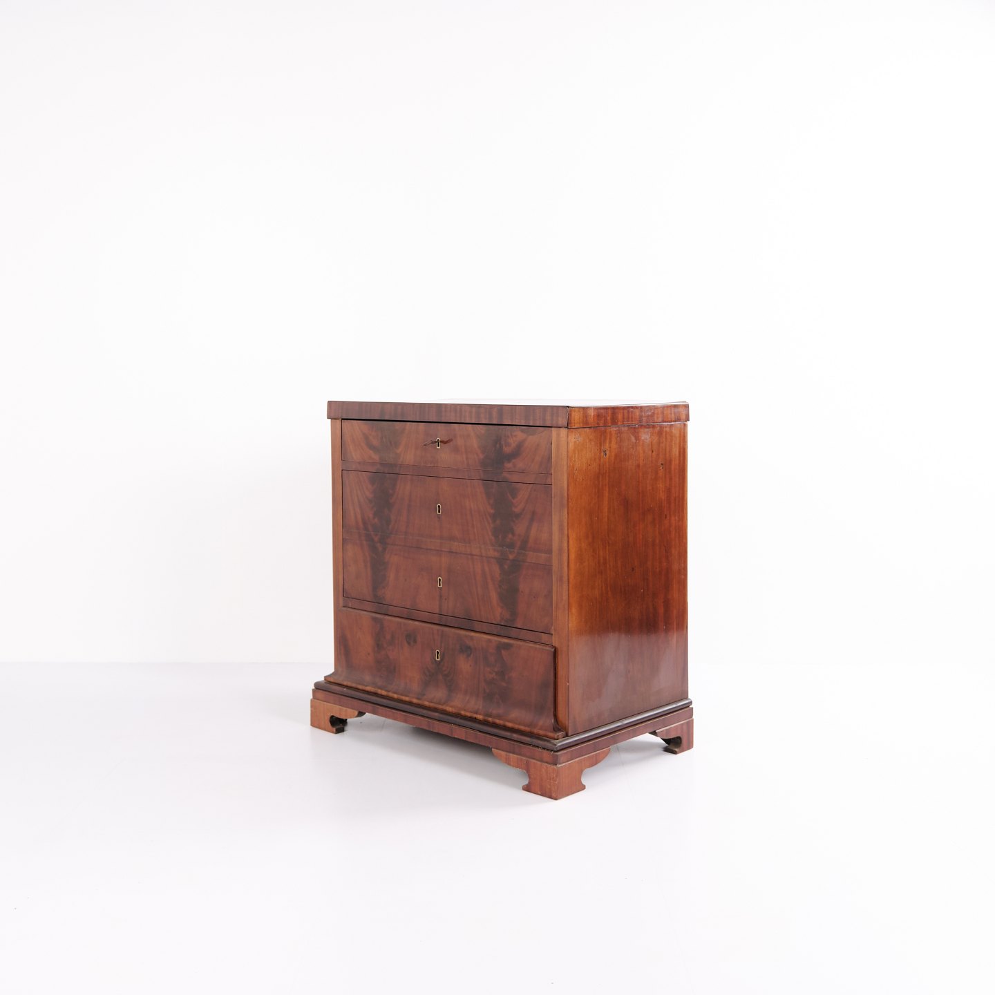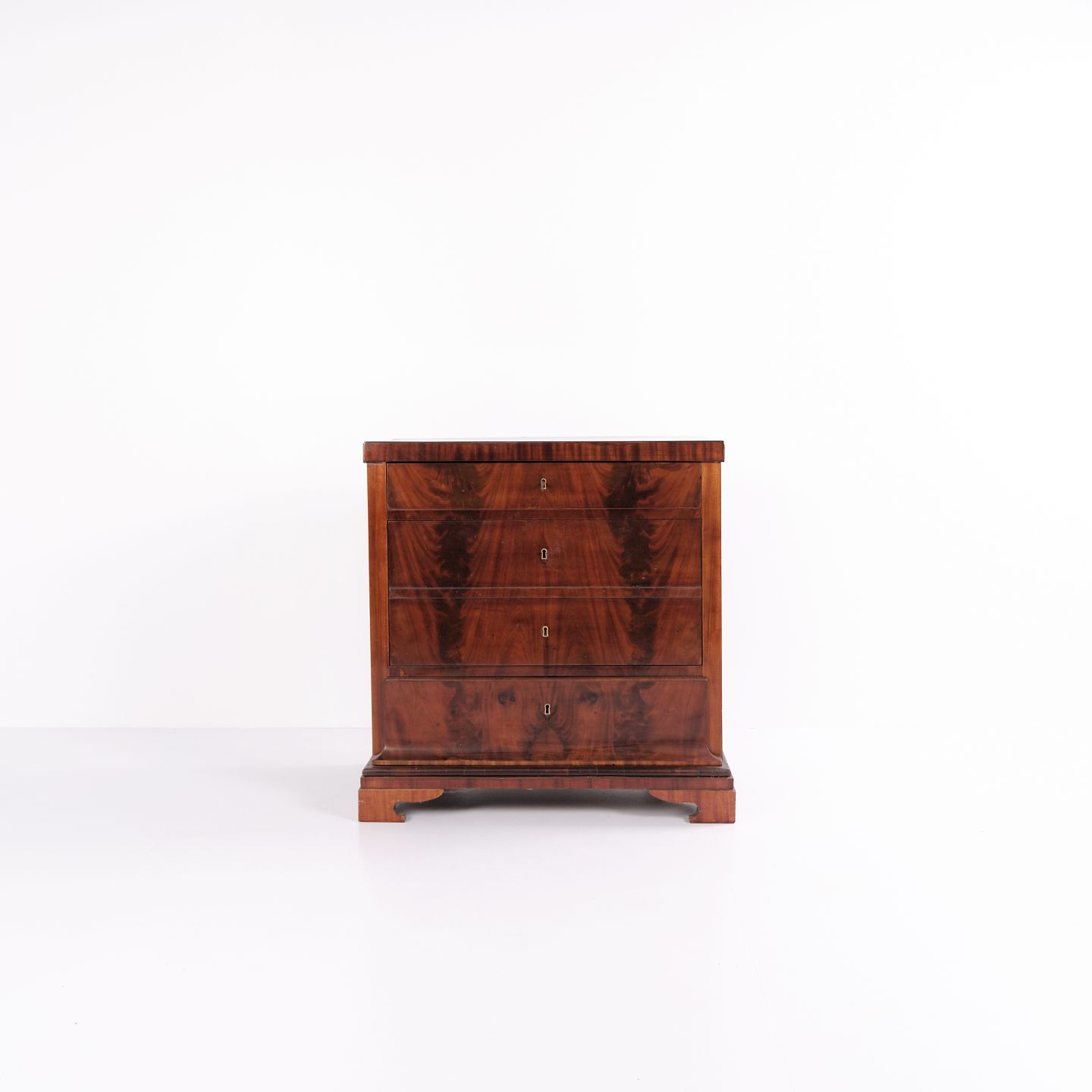 Sen Empire kommode – Flammet mahogni – 4 skuffer – Fransk håndpoleret – 1840’erne