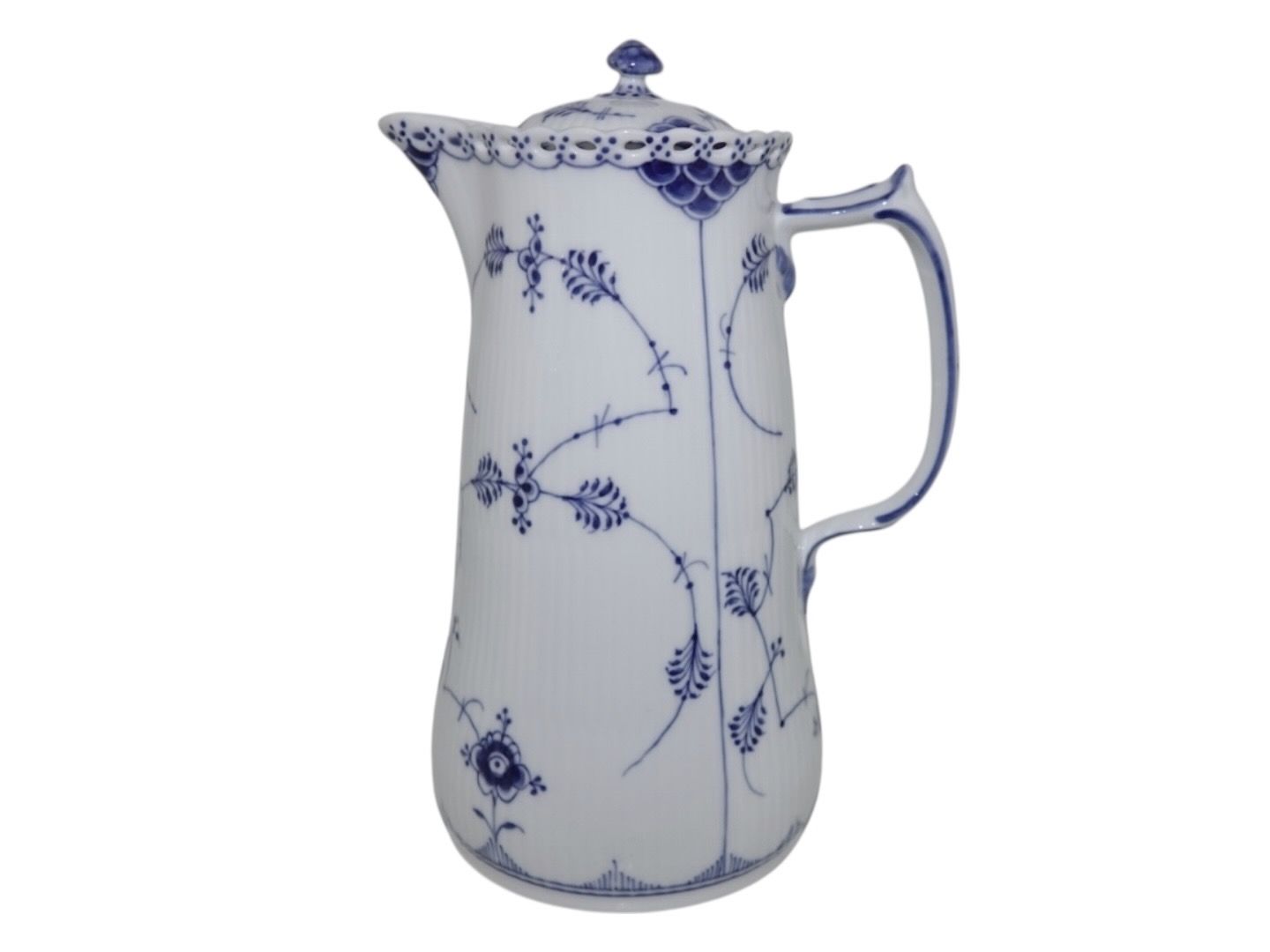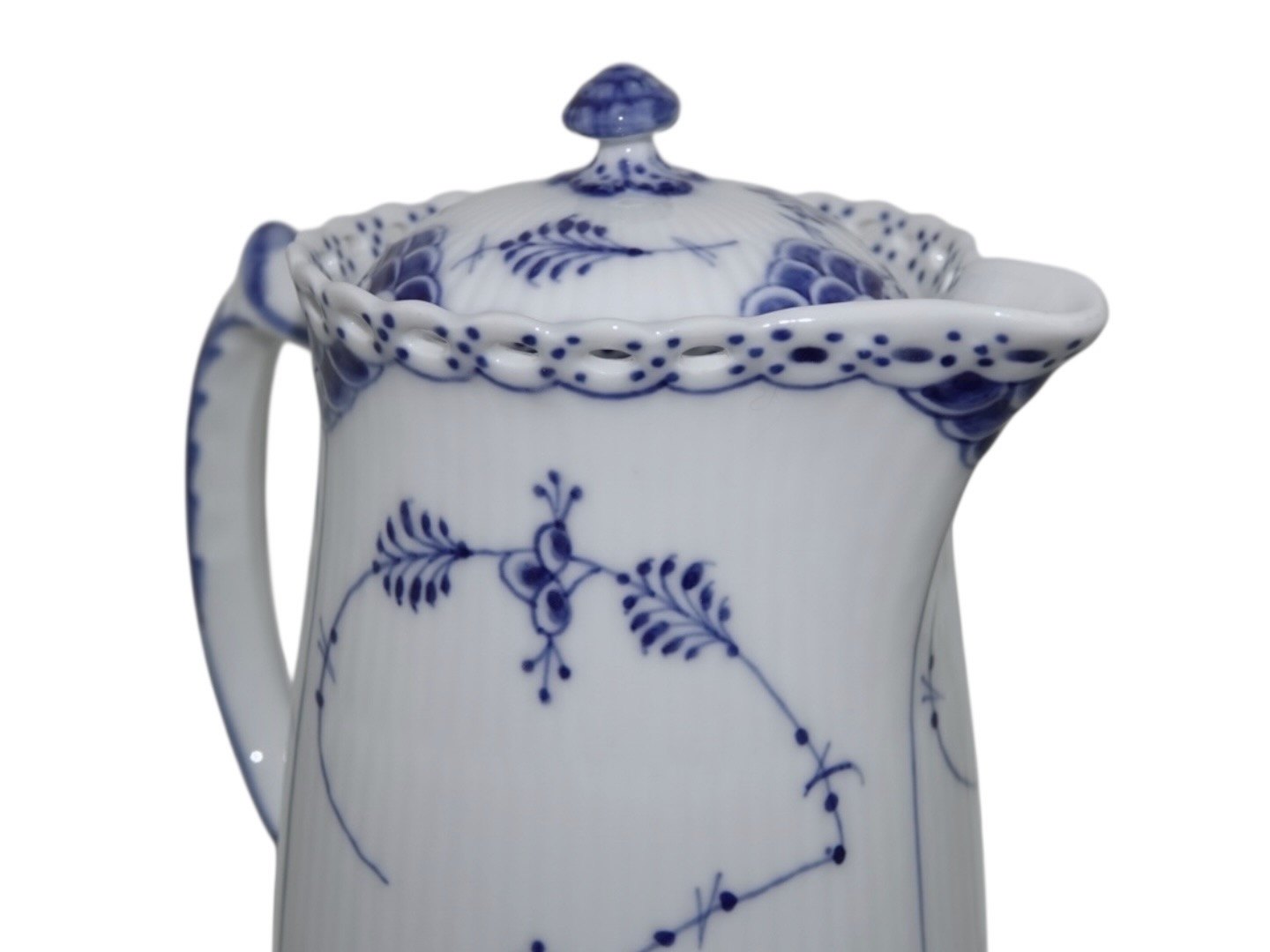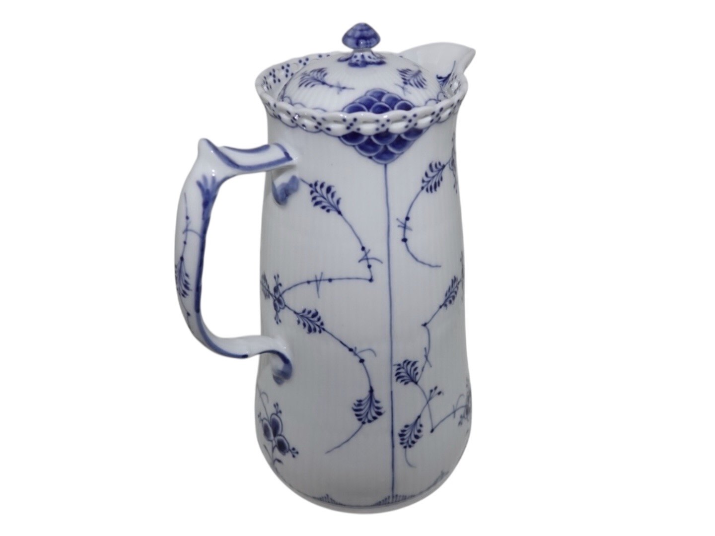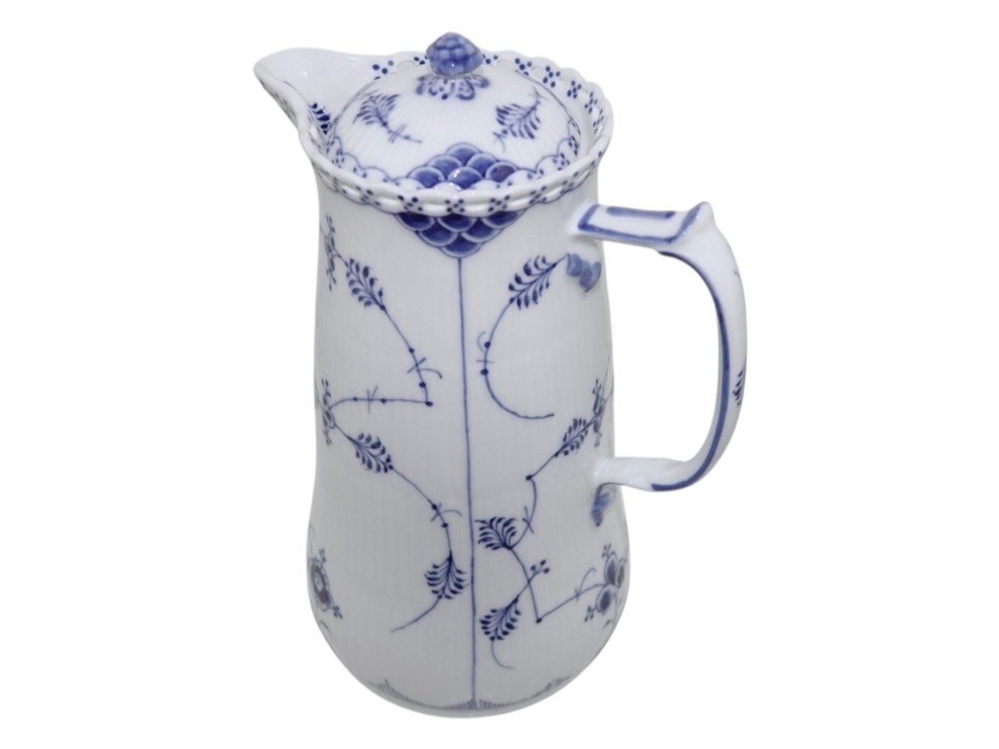 Description: Royal Copenhagen Blue Fluted Full Lace, rare chocolate pitcher.