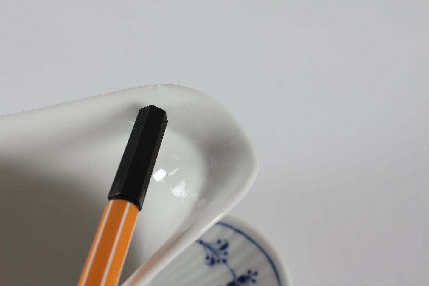 Beskrivelse: Royal Copenhagen musselmalet riflet