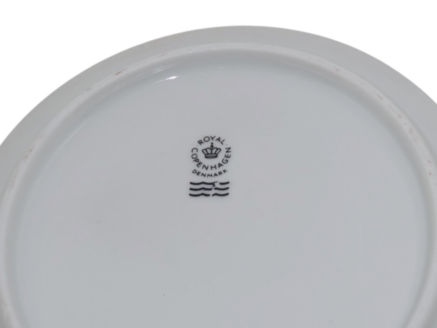 Beskrivelse: Royal Copenhagen julestel, lille asiet med julenisse, risengrød og kat.