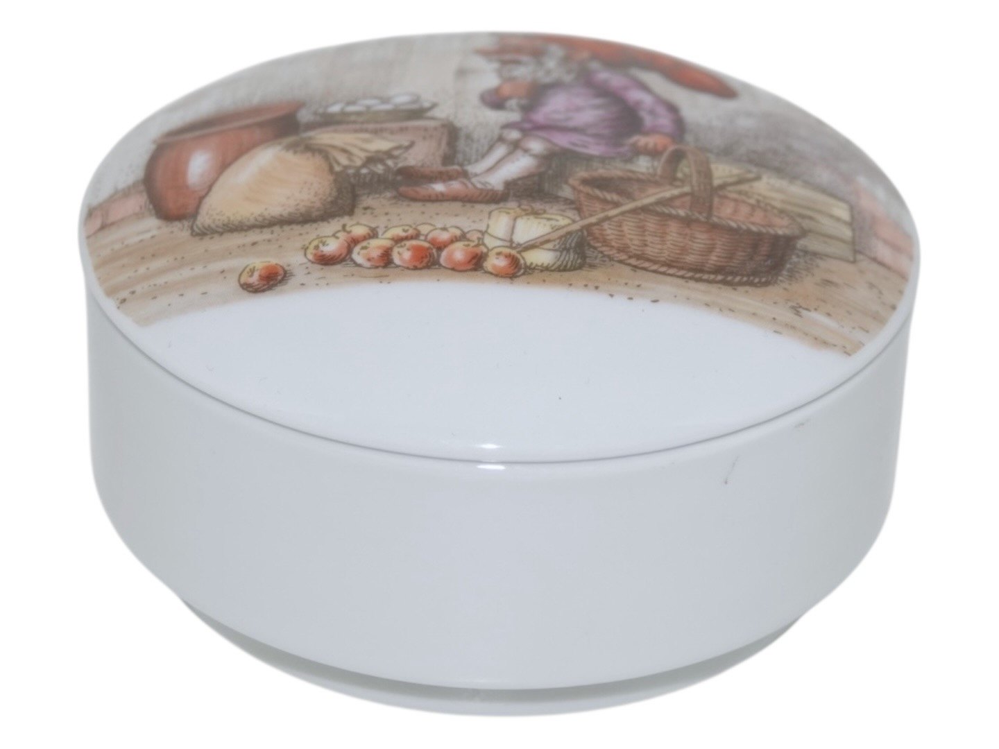 Description: Bing & Grondahl round lidded box with Christmas gnomes