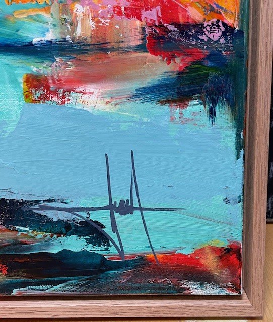 "Komposition" Flot moderne maleri i massiv egetræs svæveramme fra Bogø Design.