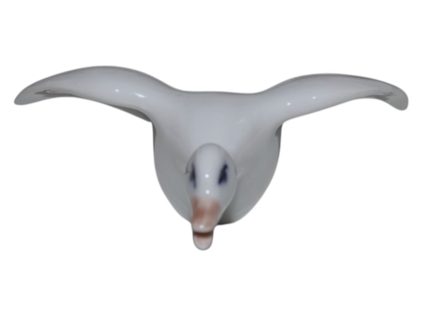 Beskrivelse: Royal Copenhagen miniature fugle figur, hvid flyvende and.