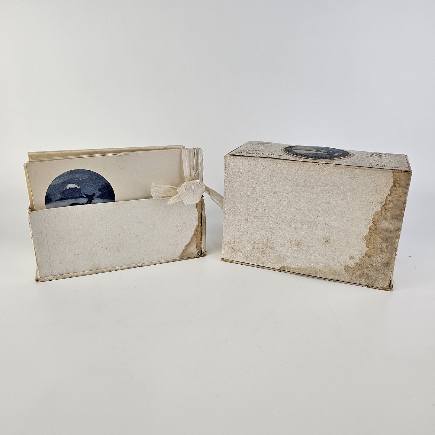 Beskrivelse: Brevkort med motiv af juleplatte fra 1923 fra Bing & Grøndahl og Royal Copenhagen. 10 kort og 10 kuverter
