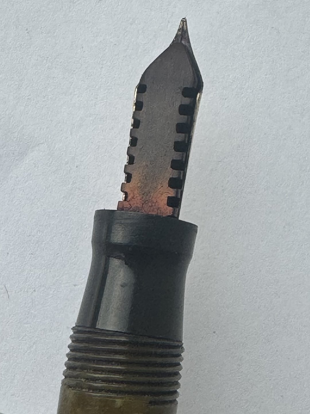 Beskrivelse: Kort Sheaffer’s fyldepen med lever filler. Monteret lille øsken øverst på hætten. Før end fyldepennen igen fungerer skal der indsættes en ny gummisæk, så blæk kan påfyldes. Fremstår ellers i fin stand med alle originale Sheaffer’s dele. Length: 11,8 cm