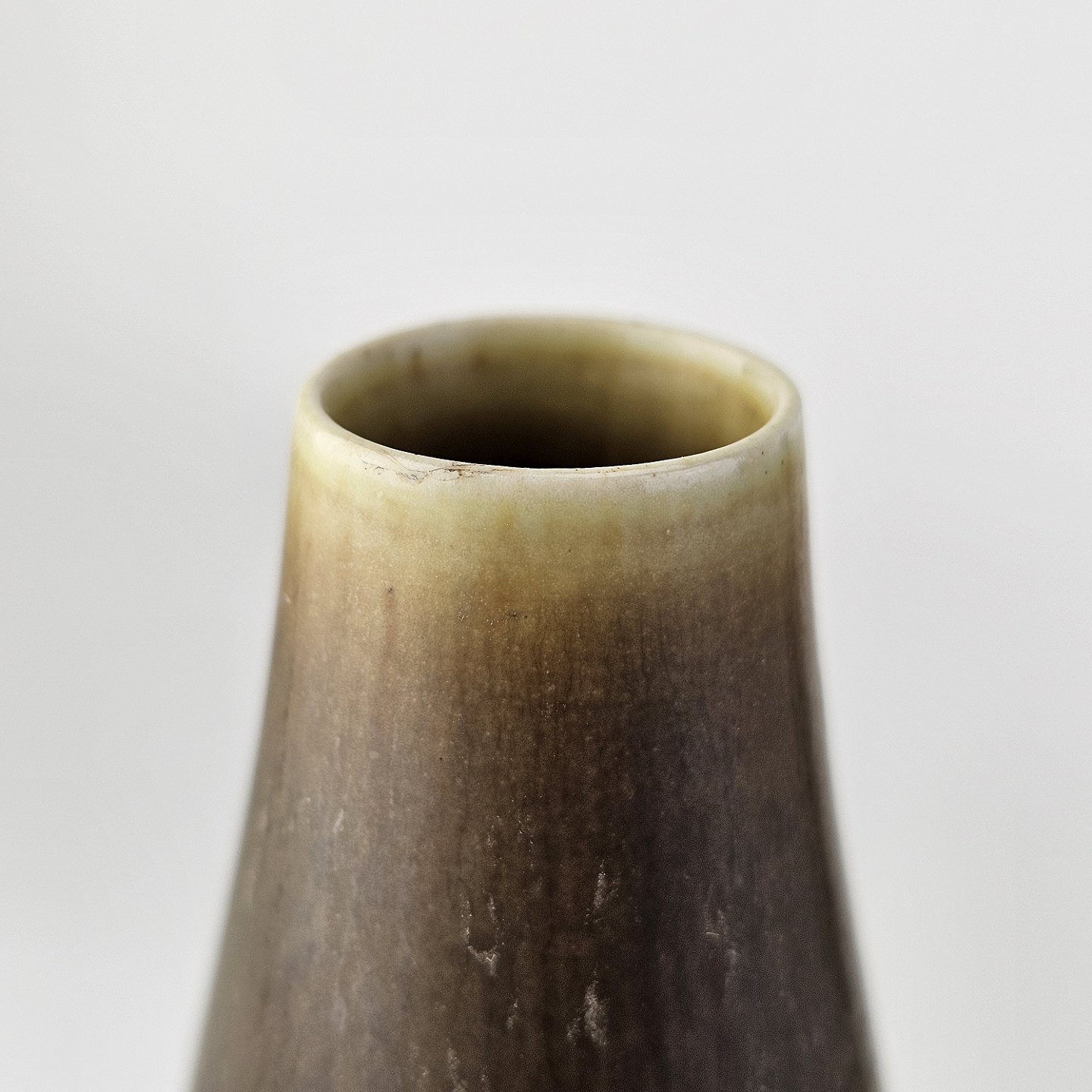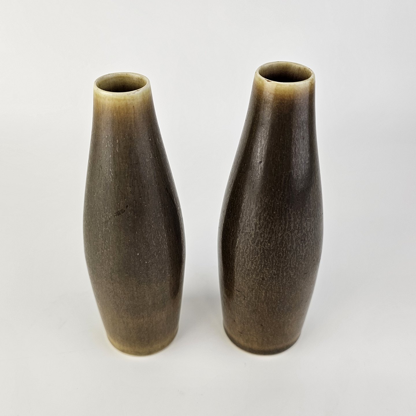 Beskrivelse: Sæt af to vaser i stentøj i harepelsglasur og med indsnævret hals