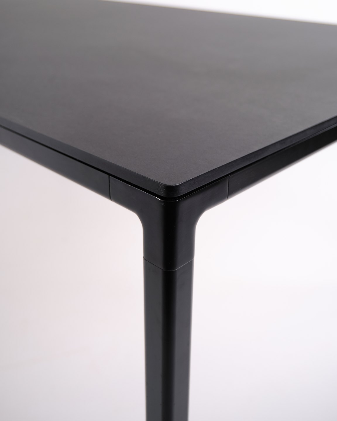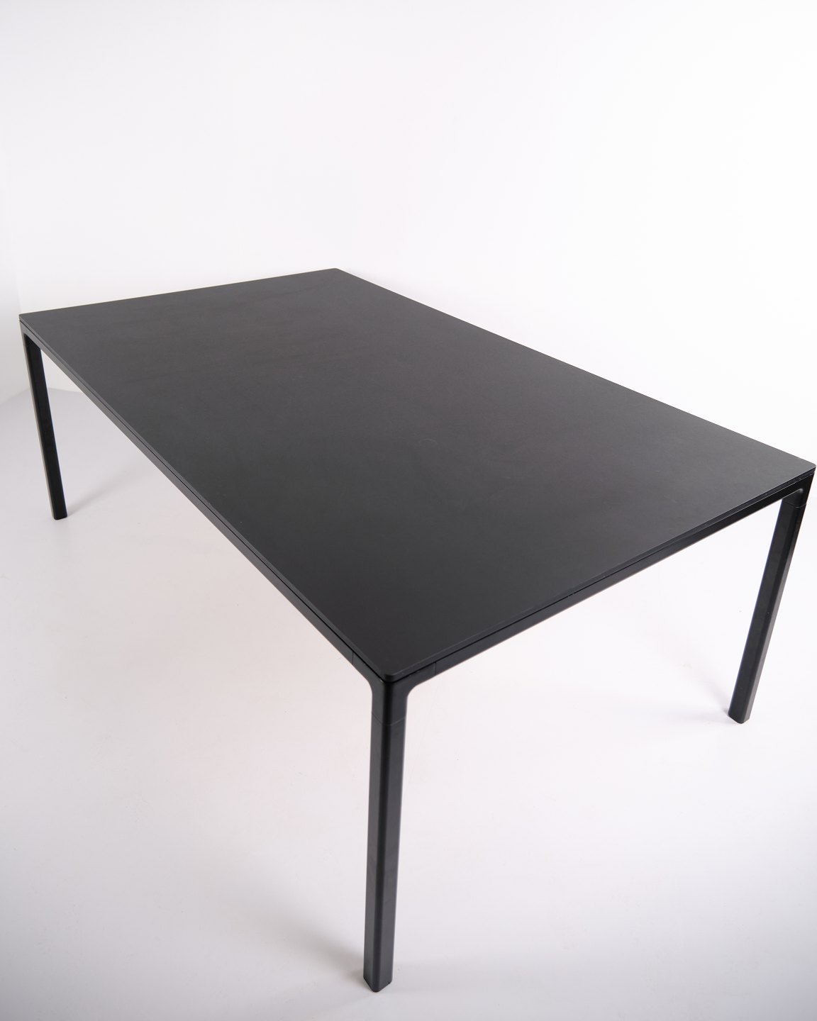 Beskrivelse: HAY T12 spisebord med sort linoleumsbordplade og stel i sort pulverlakeret aluminium. Et stilrent og rummeligt bord med bløde hjørner og god plads til både spise- og arbejdsbrug.