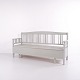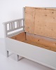 Beskrivelse: Svensk slagbænk fra ca. 1860’erne, udført i fyrretræ og gråmalet i senere tid. Klassisk skandinavisk møbel med dekorative bemalinger og god opbevaringsplads under sædet. Velbevaret antikt møbel med tidstypiske detaljer.