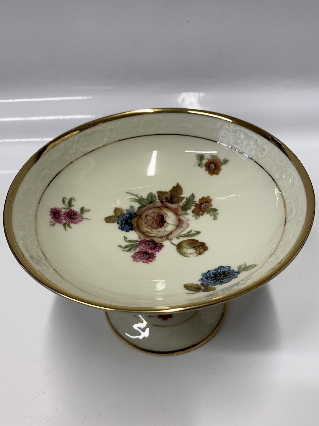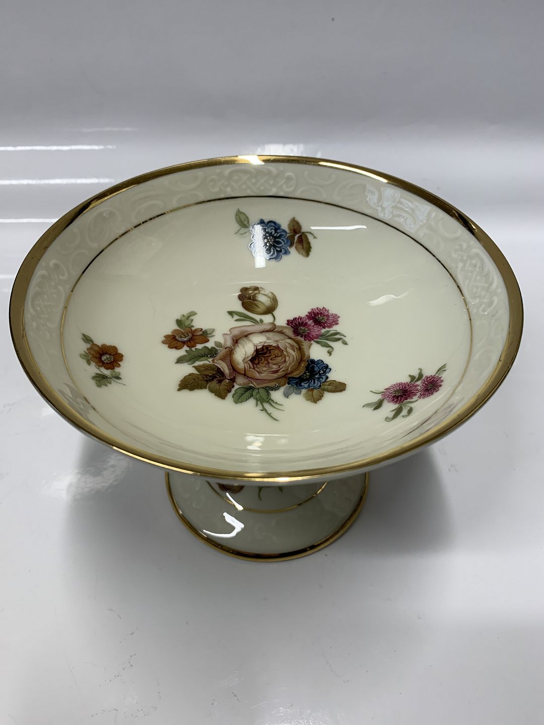 Beskrivelse: KPM Rosenborg konfektskål på høj fod,