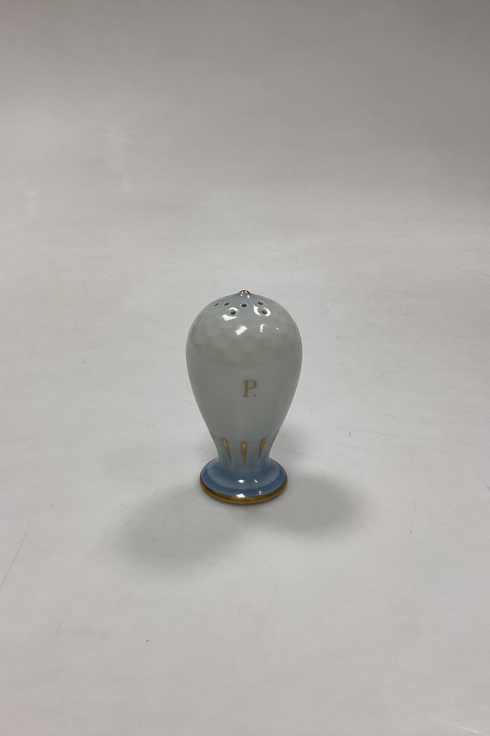 Description: Bing and Grøndahl Seagull with gold Pepper Shaker No. 52 B. With letter P instead of seagulls. Measures 7 cm / 2.75 in.