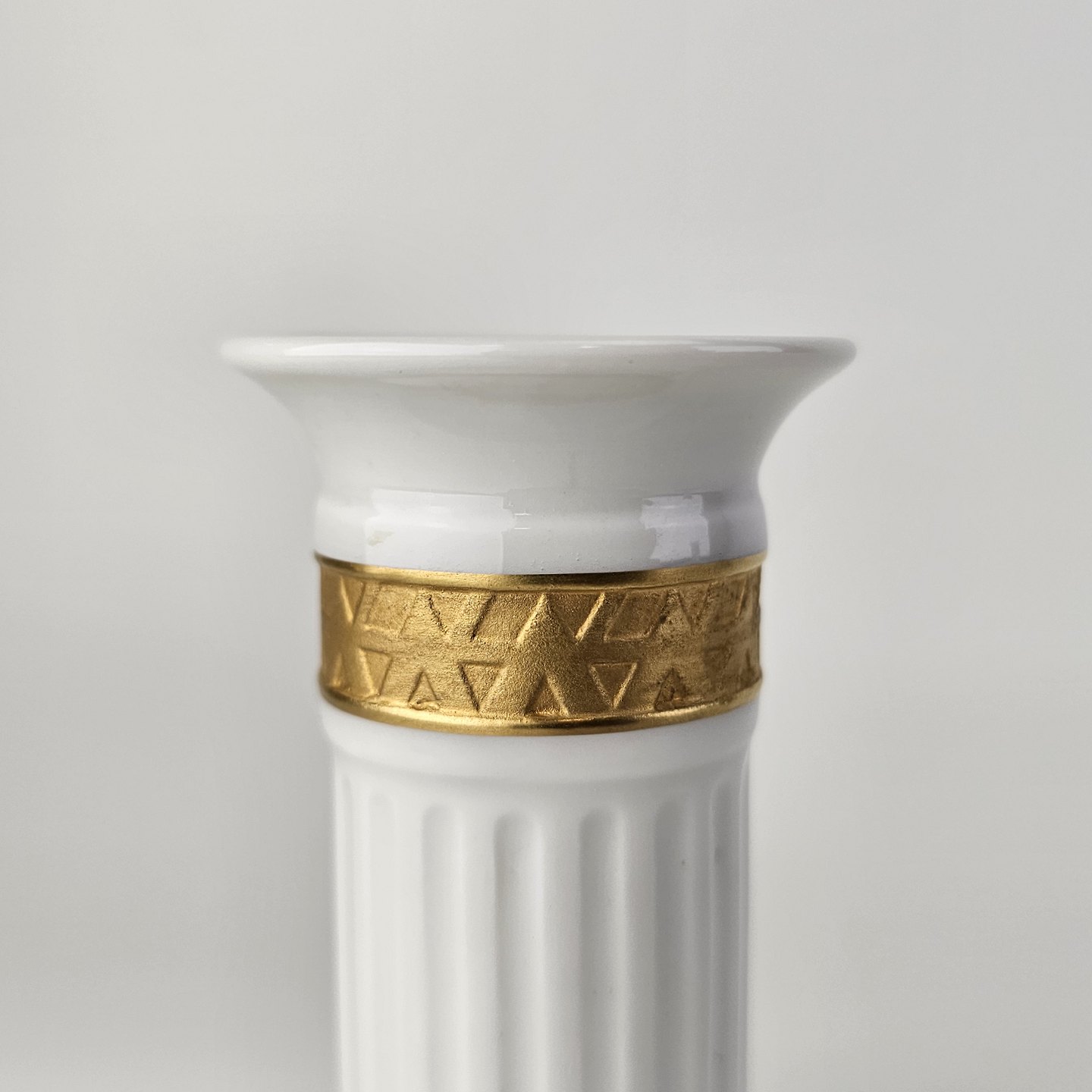 Guld Vifte er af kongeligt hvidt porcelæn dekoreret med bånd af guld