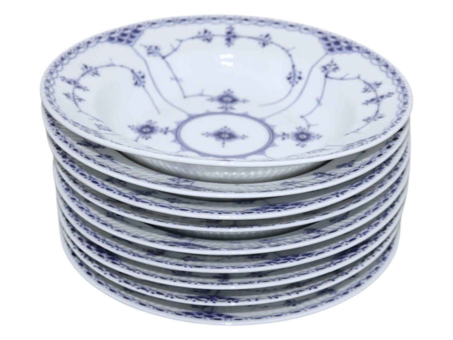 Beskrivelse: Royal Copenhagen Musselmalet Halvblonde, dyb tallerken.