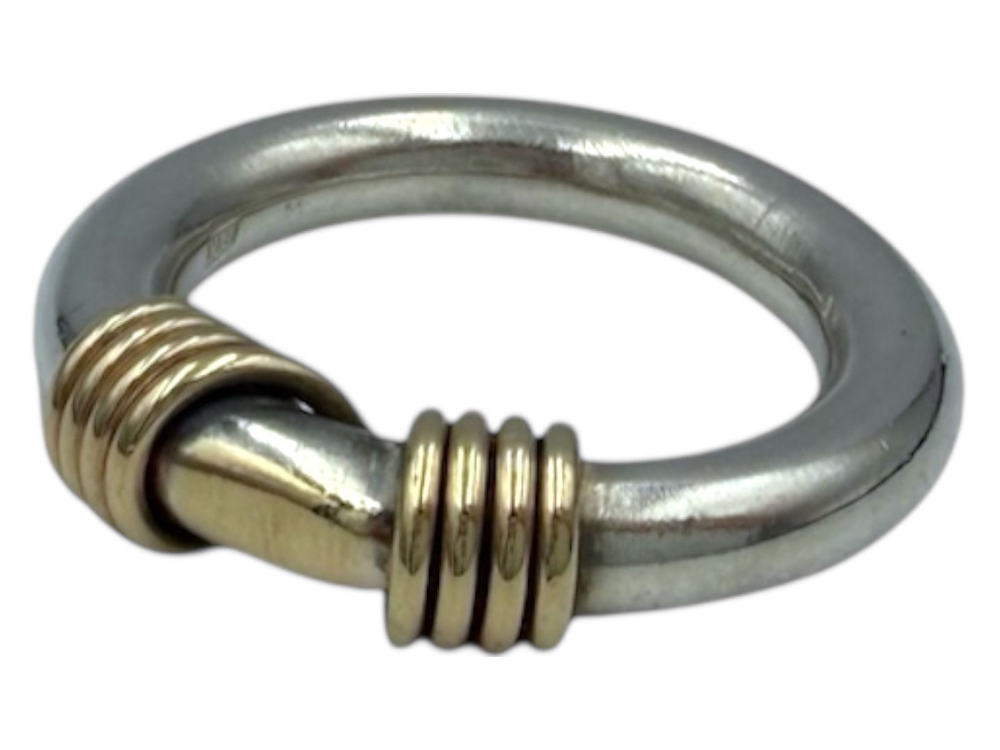 Beskrivelse: Sterlingsølv og 14 karat guld, ring med snoet guld.