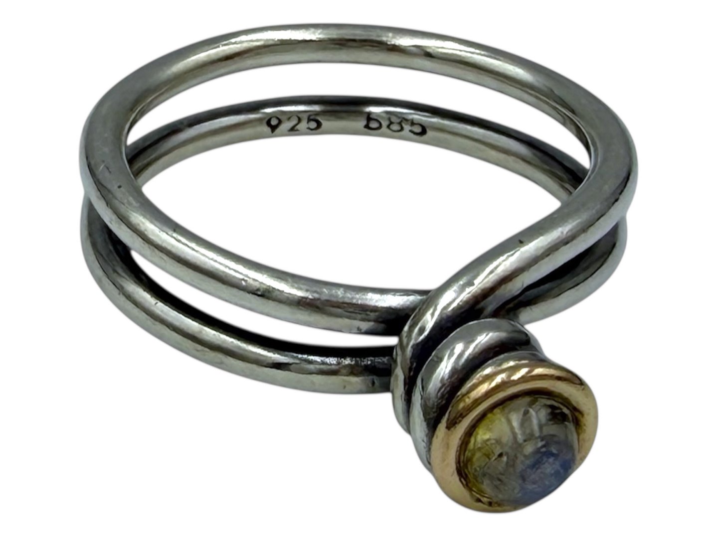 Beskrivelse: Sterlingsølv og 14 karat guld, moderne ring med sten.