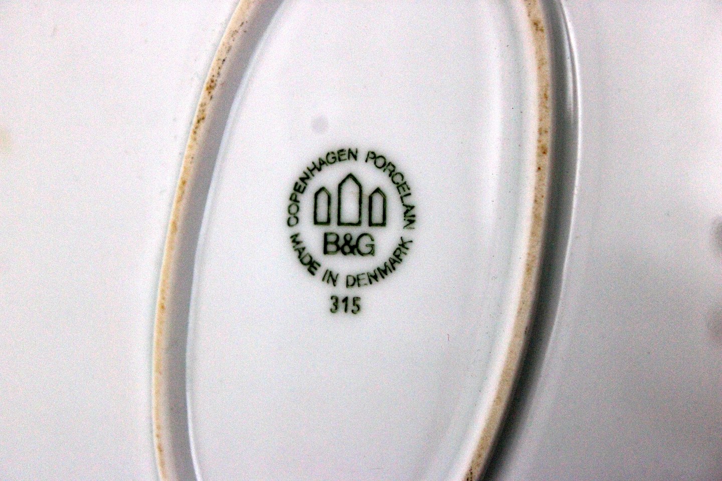 Beskrivelse: Bing & Grøndahl, Serveringsfad. Nr. 315. Designet af Martin Hunt. Længde 36 cm. Bredde 23 cm. II sortering. Almindelig brugsslid, brugsstreger. Pris: 400 kr. stk. Lager: 1