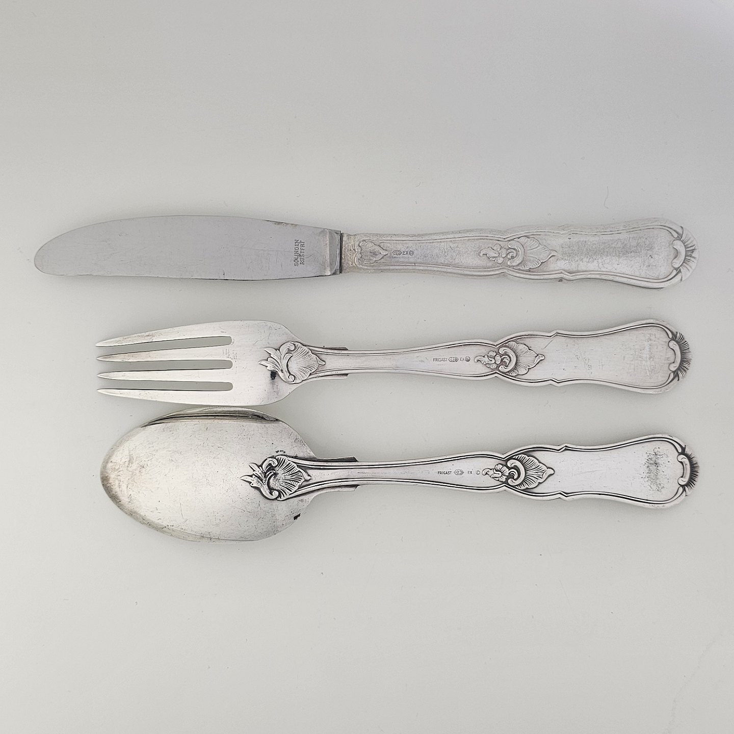 Beskrivelse: Bestik i sølvplet med bestikmønster Marianne