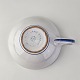 Beskrivelse: Kop og underkop i keramik med blå detaljer og blomsterdekoration