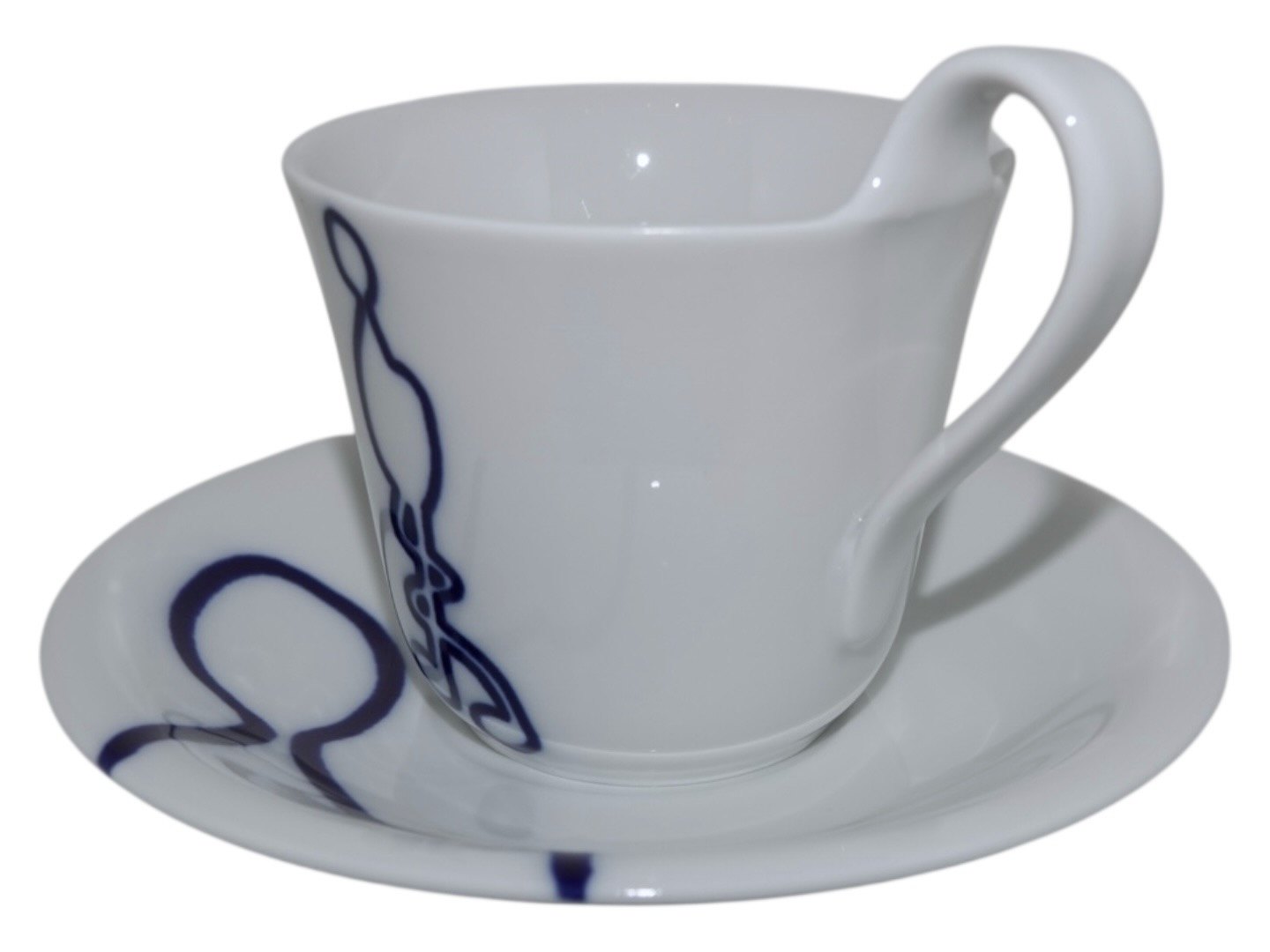 Beskrivelse: Royal Copenhagen Musica, højhankskop med tilhørende underkop. Dekoration E.
