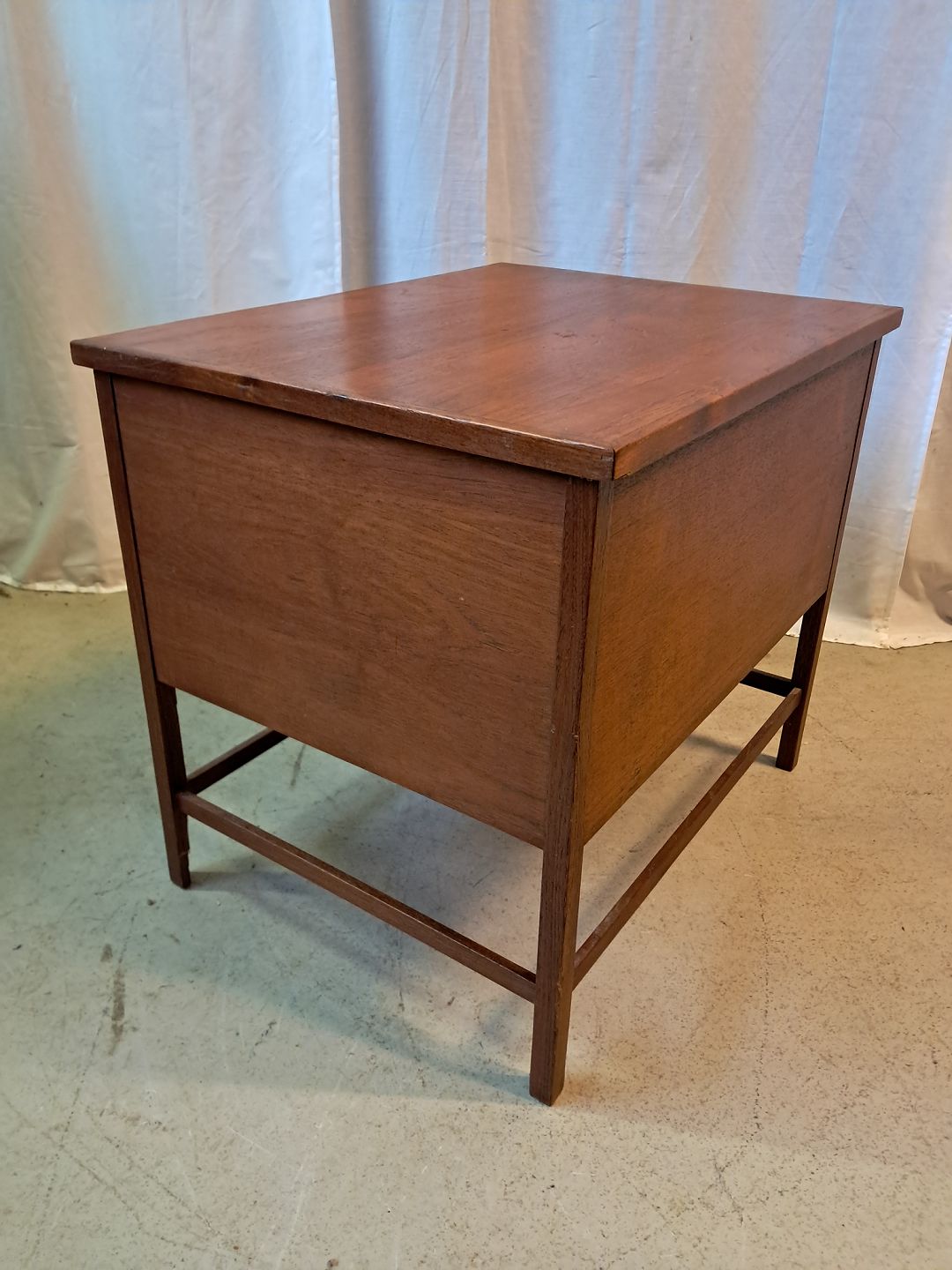 Beskrivelse: Kassemøbel i fineret teaktræ, fra 1960erne.