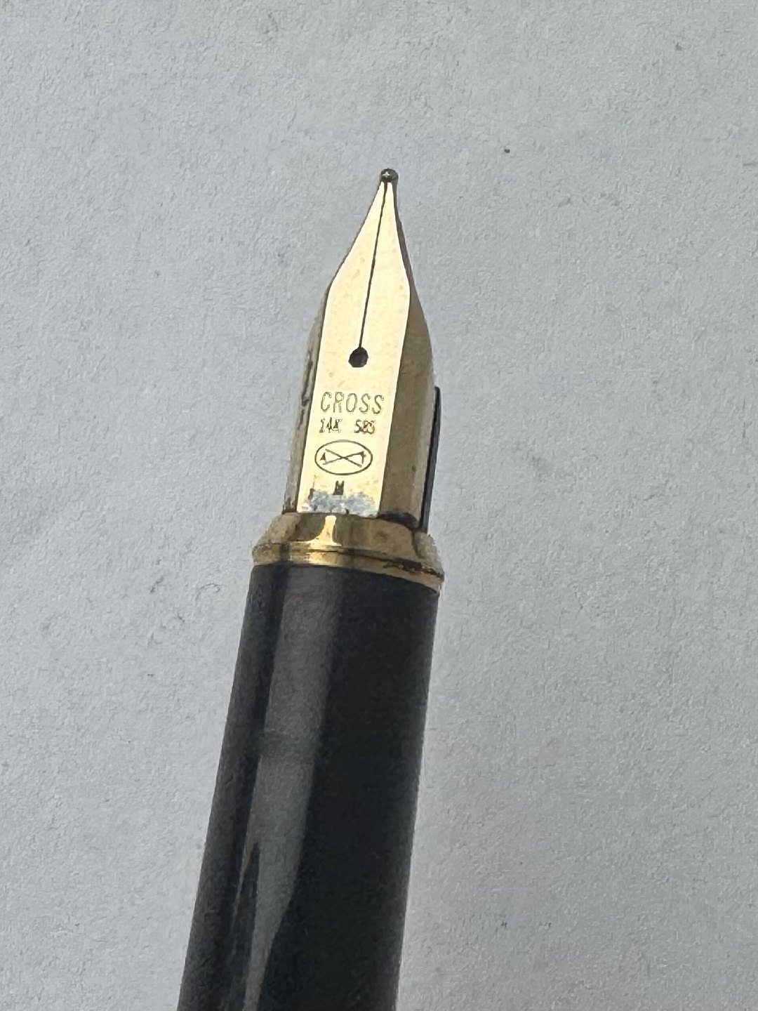 Description: Cross fountain pen in gold-double with piston filler ink filling system. All parts original including a 14 carat gold nib. Appears in good condition and ready to be used. L. 13.4 cm