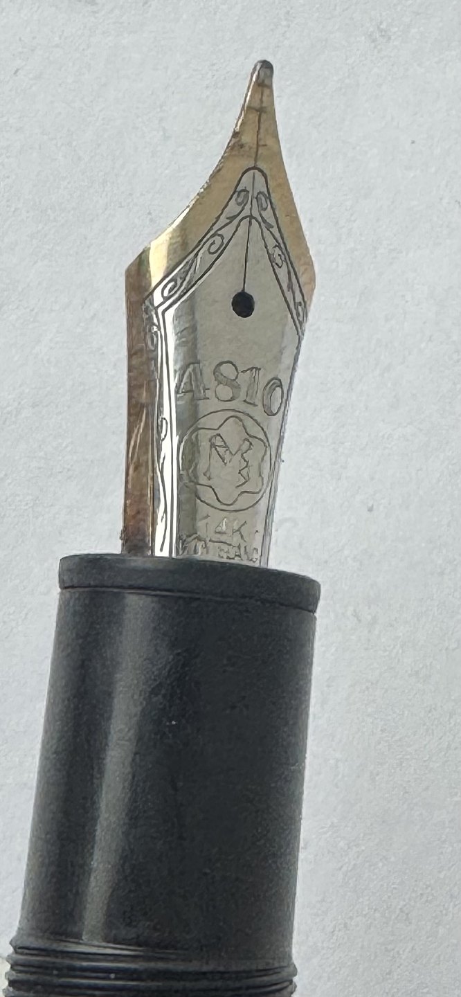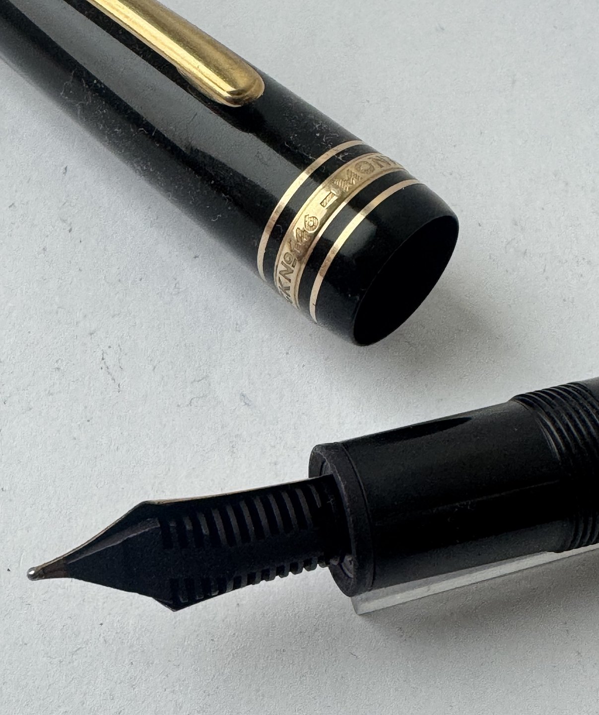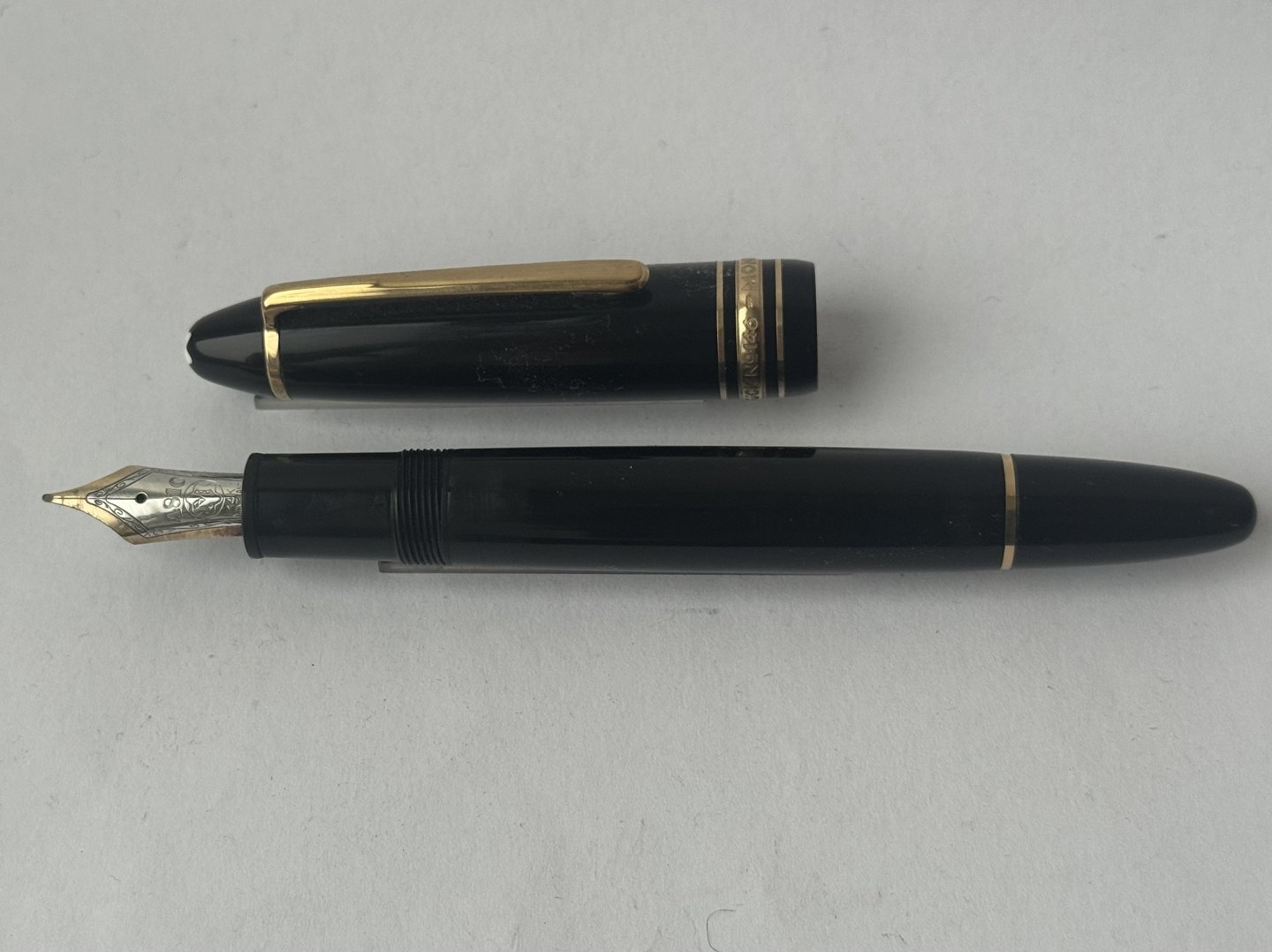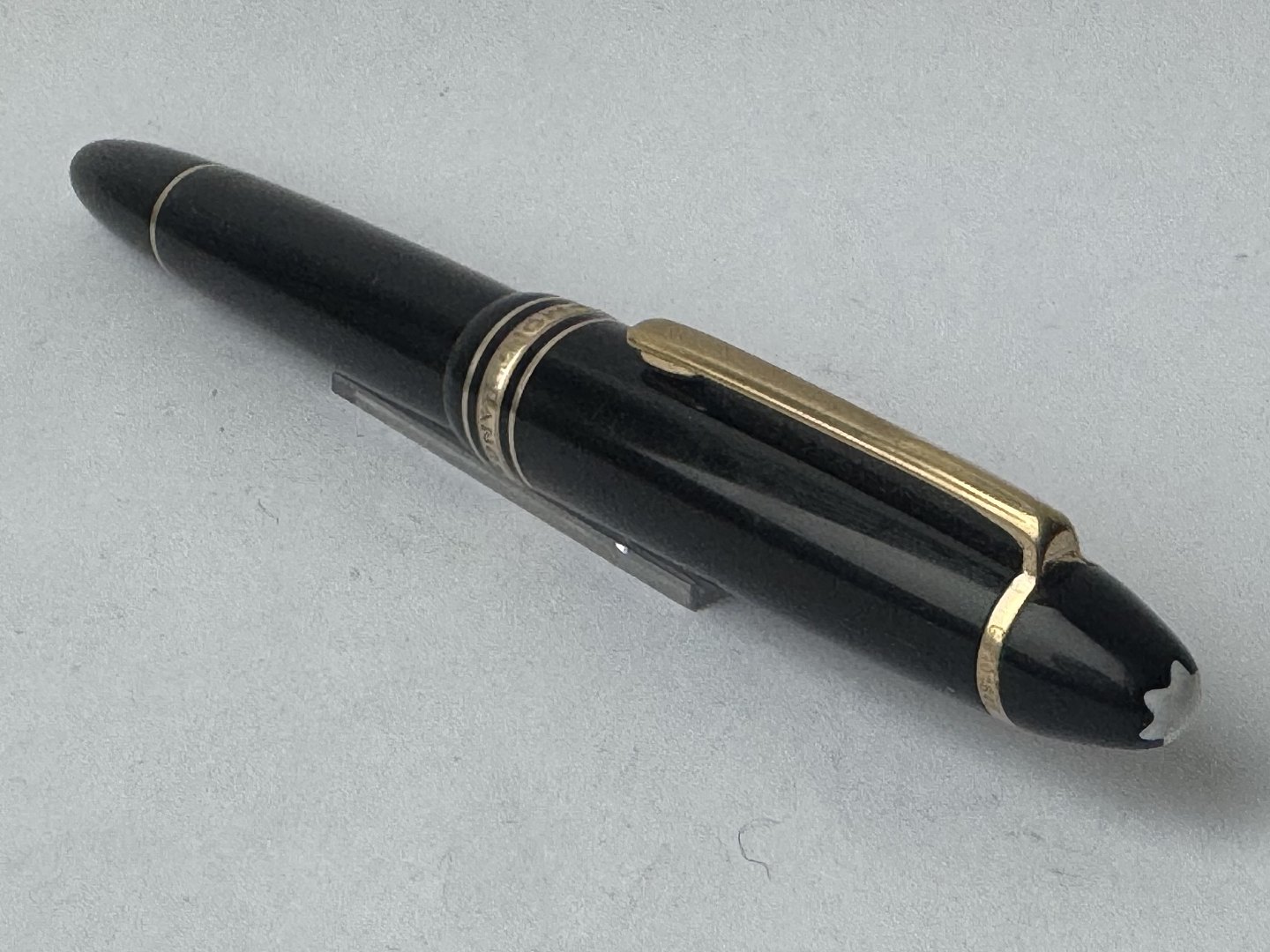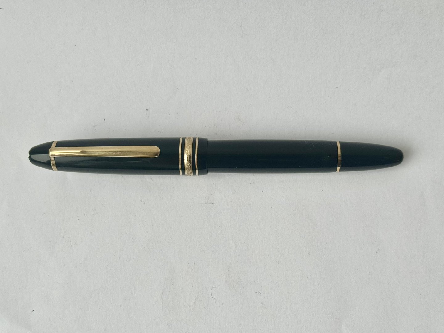 Description: Black Montblanc Meisterstück LeGrand fountain pen with all original Montblanc parts including a large 14 carat gold nib. Ink filling with piston filler. In good condition and ready to be use. L. 14.3 cm.
