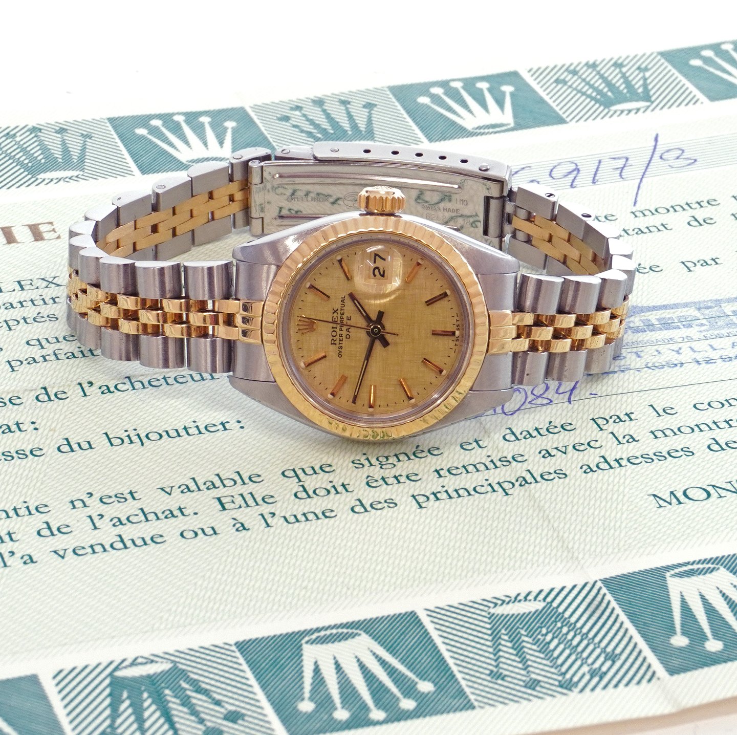 Rolex Oyster Perpetual Date ref. 6917/3 i guld og stål. Leveres med certifikat dateret 31.01.1984. D: 26mm