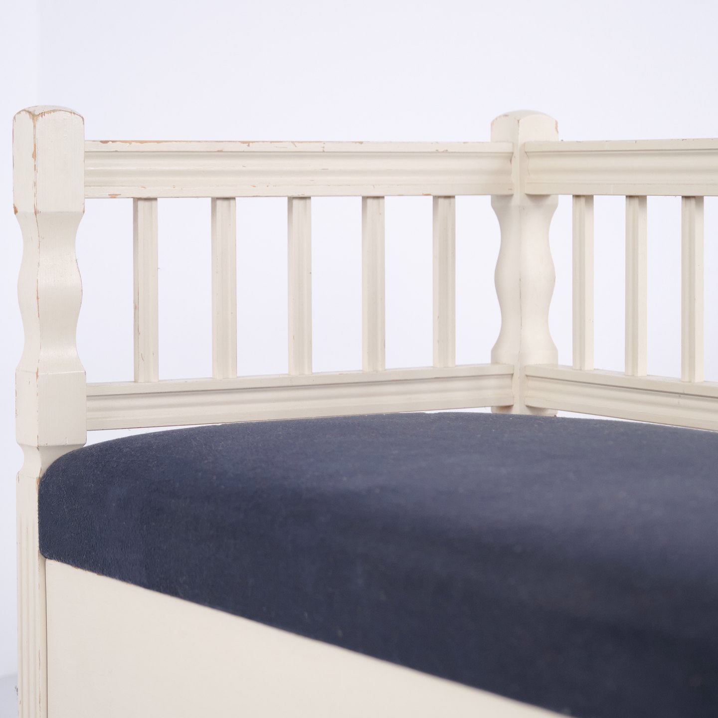 Antique Storage Bench Gustavian Style White Painted & Upholstered Seat Circa 1890