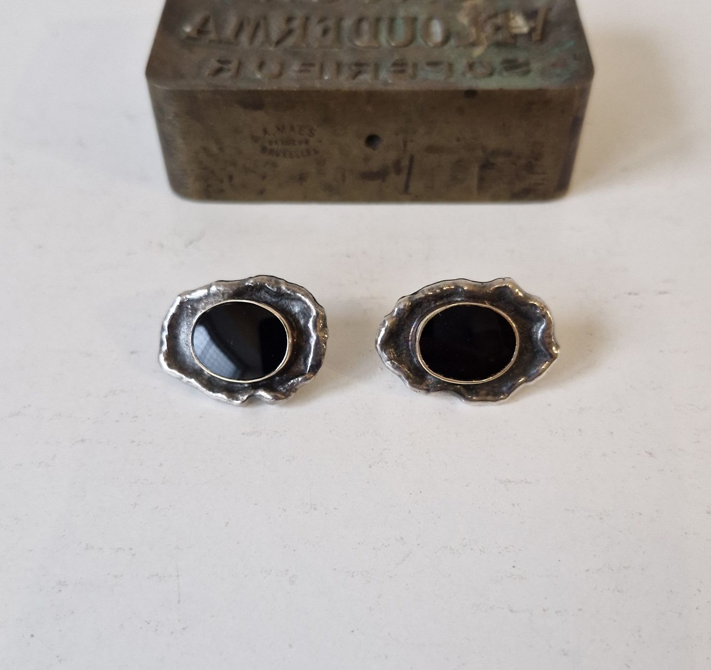 Beskrivelse: Par store ørestikker i sterlingsølv med onyx af Niels Gunni Vase